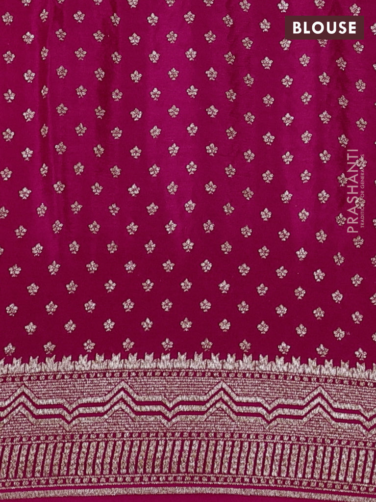 Banarasi crepe saree lime yellow and pink violet with woven buttas and long woven border