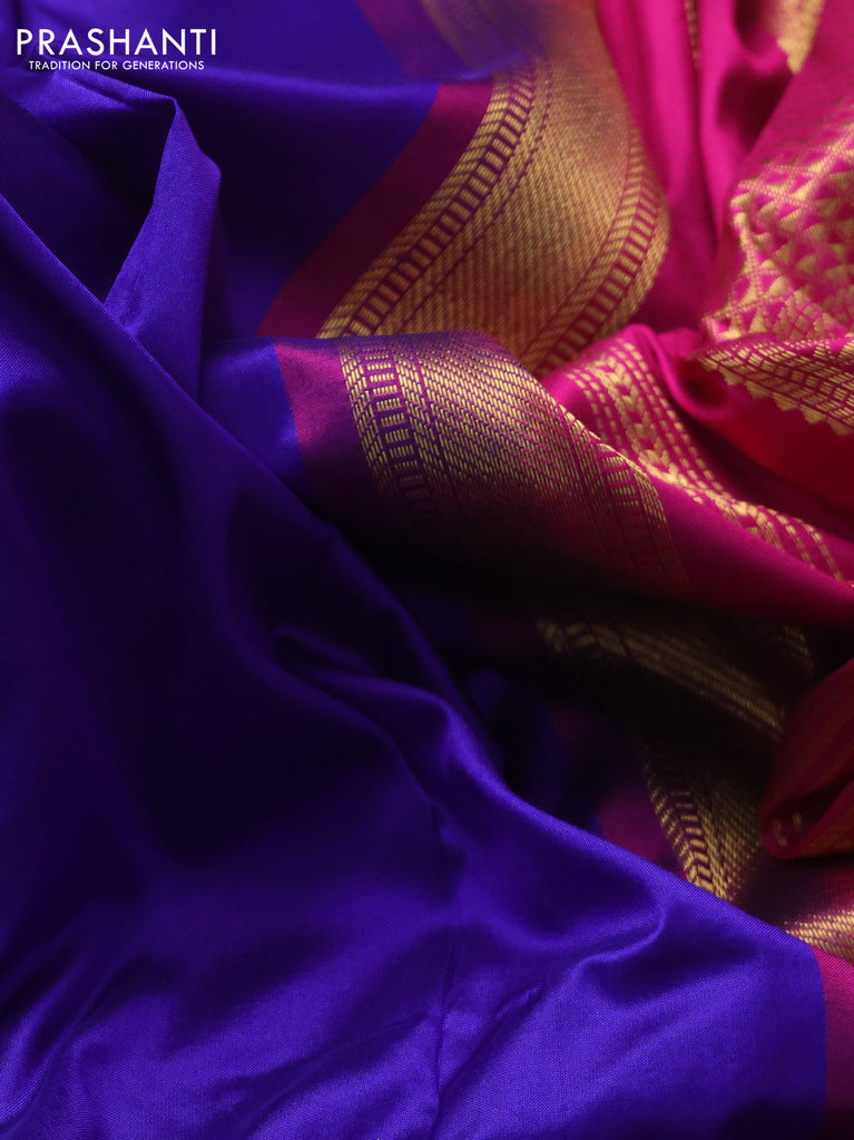 10 yards silk saree dual shade of cs blue and maroon with plain body and temple design zari woven border