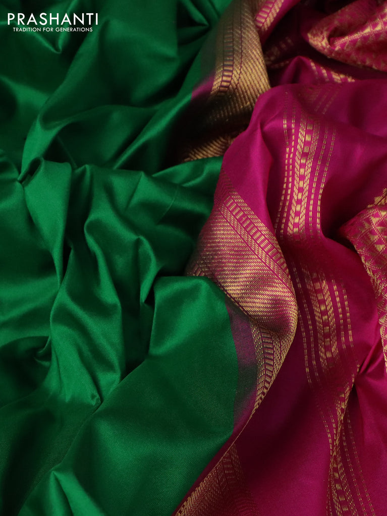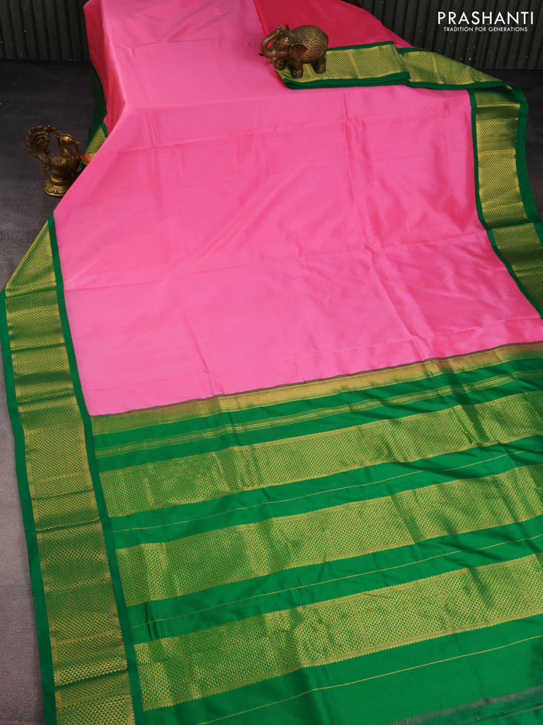 10 yards silk saree dark pink and green with plain body and zari woven korvai border