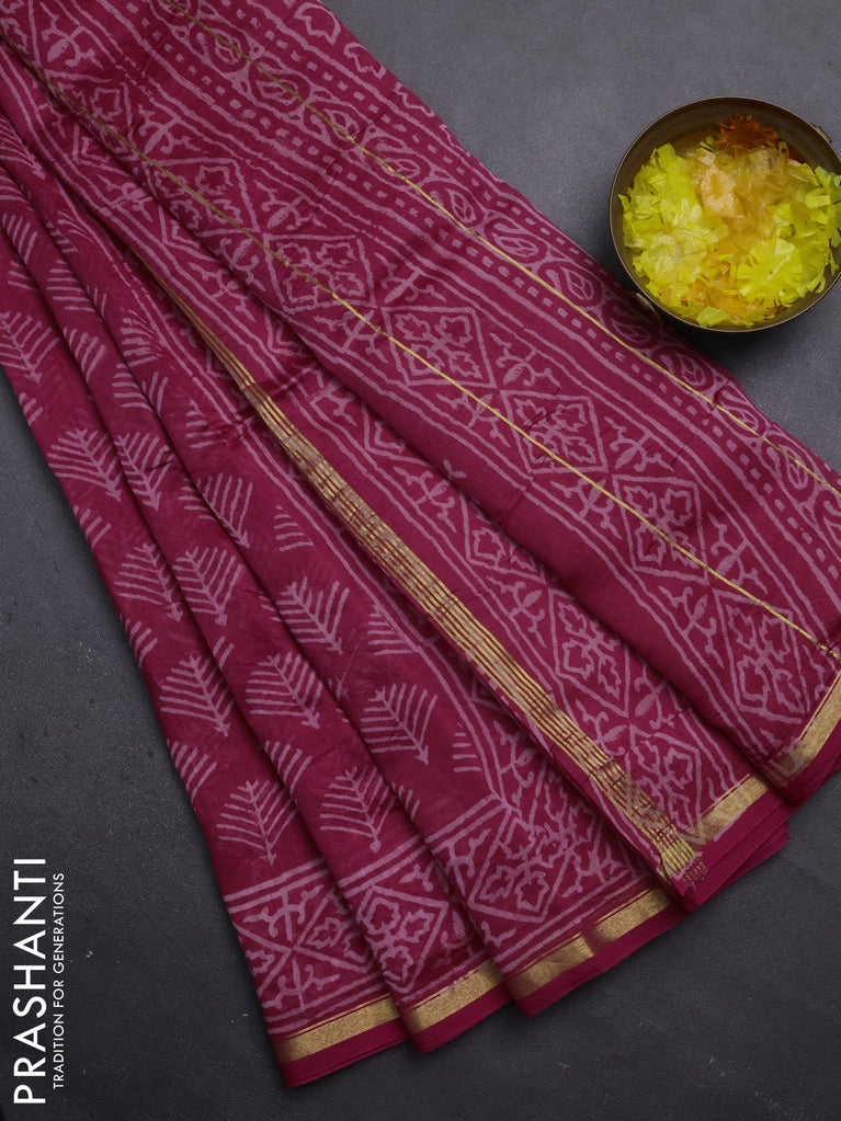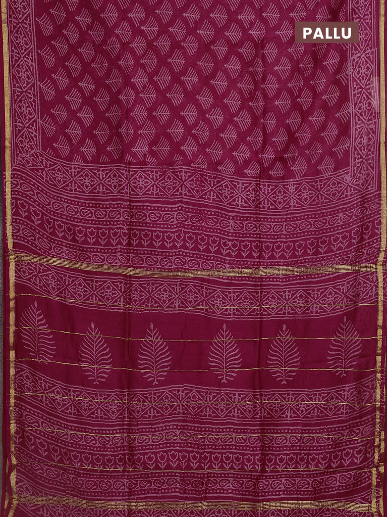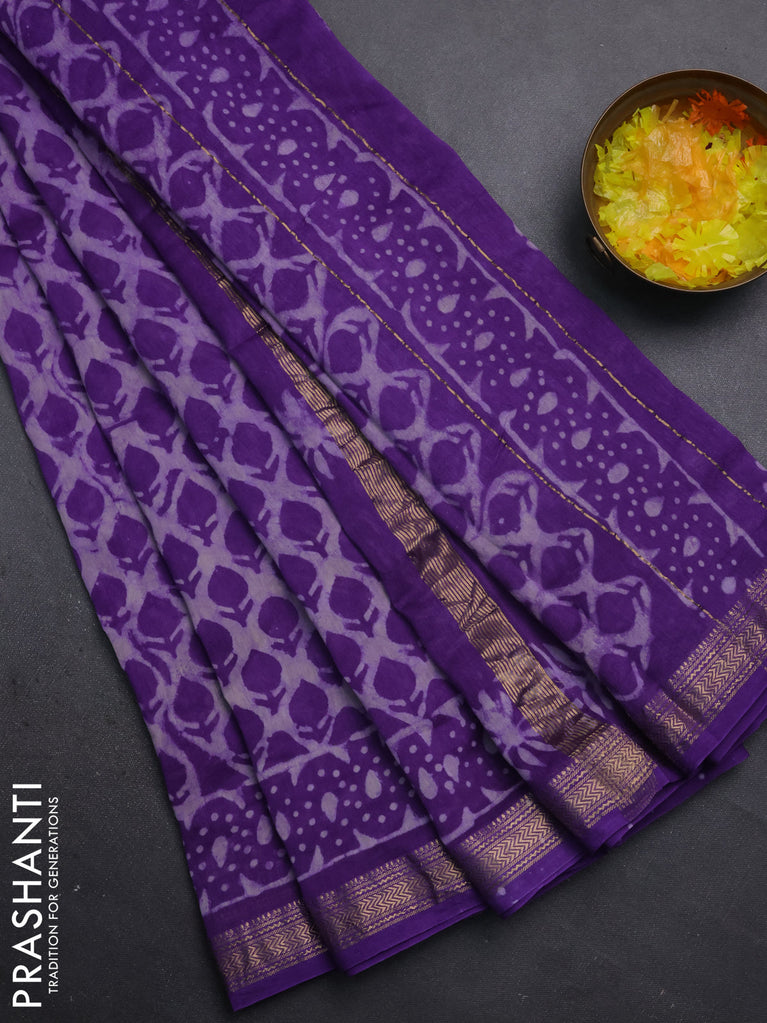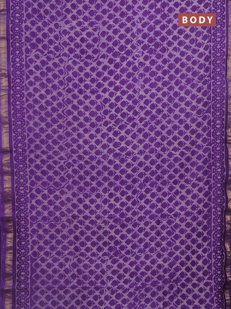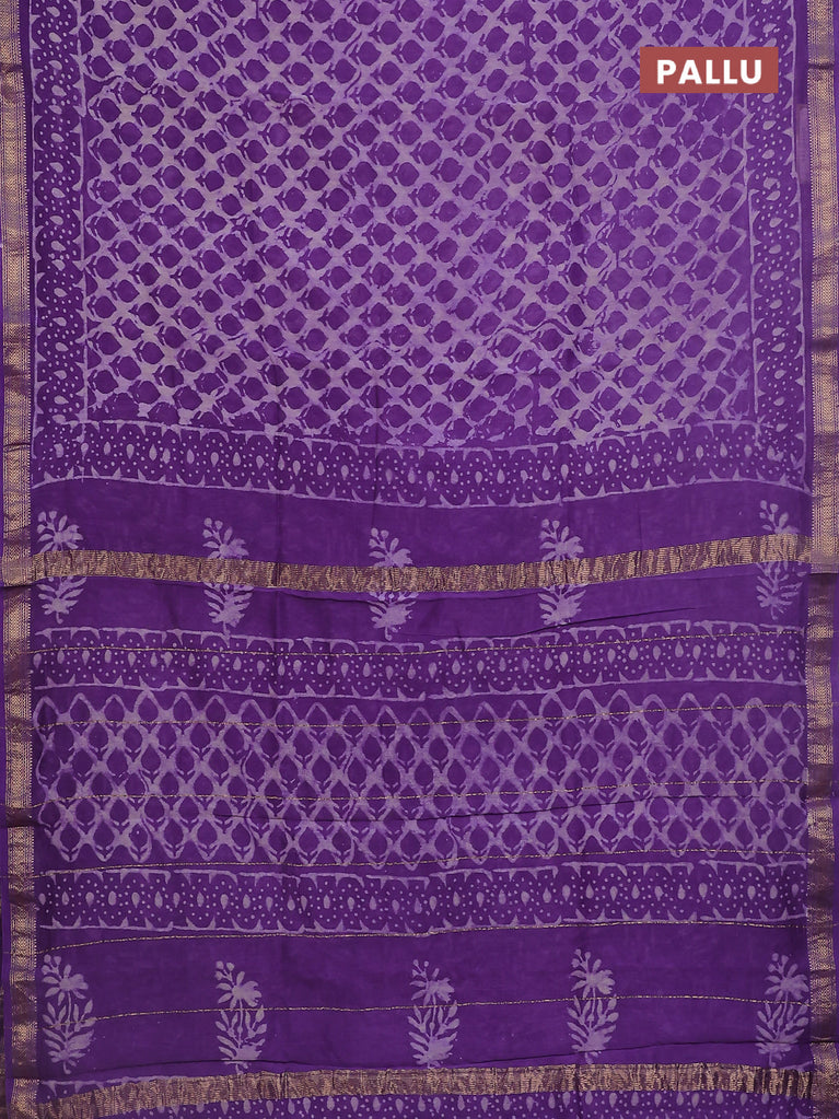 Chanderi bagru saree violet with dabu prints and maheshwari border