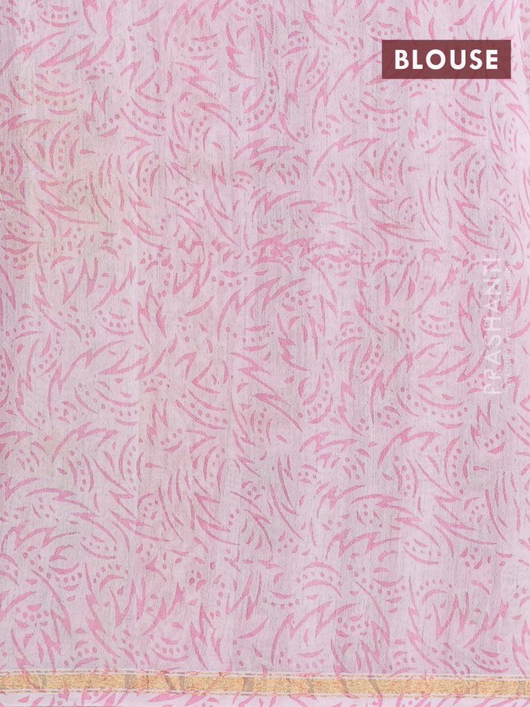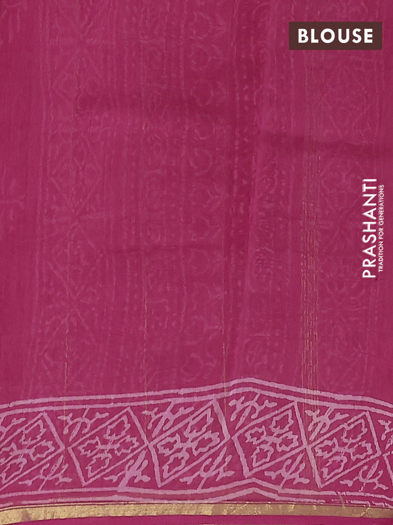 Chanderi bagru saree pink with butta prints and small zari woven border