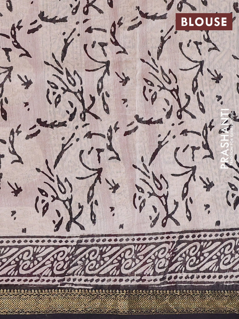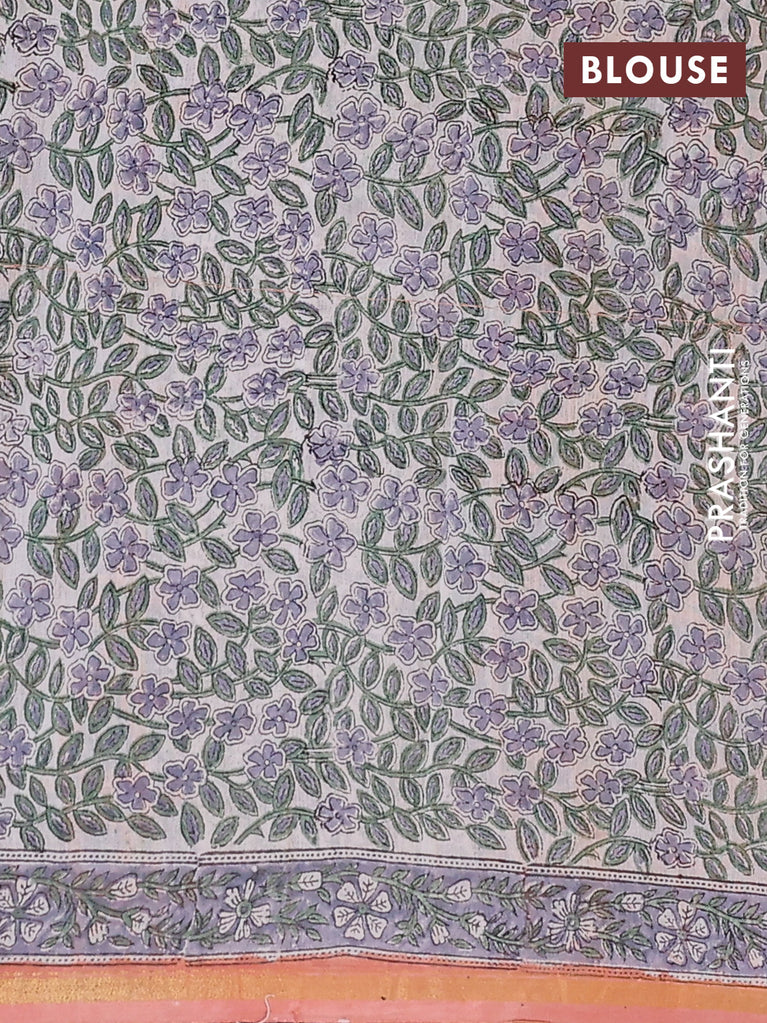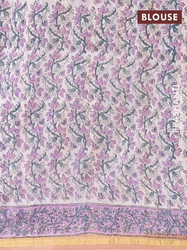 Chanderi bagru saree sandal and lavender with allover floral prints and small zari woven border