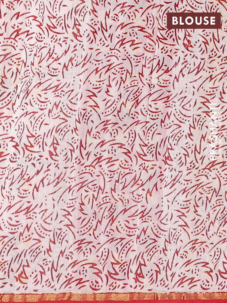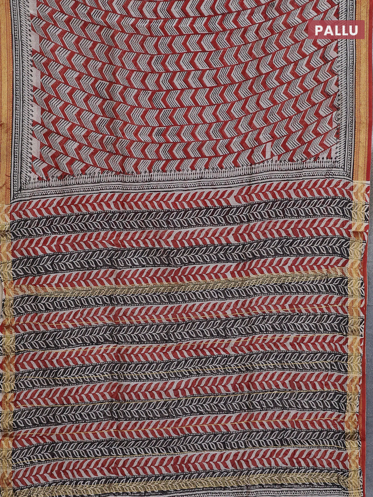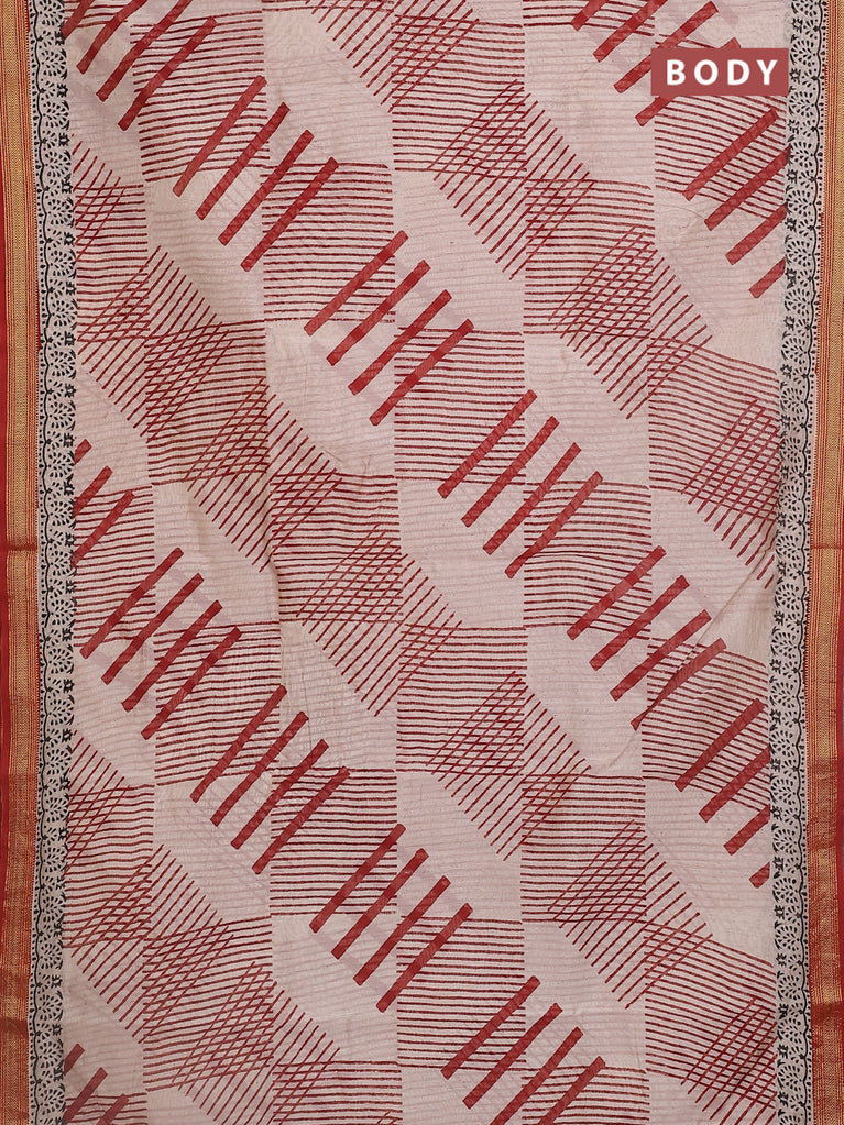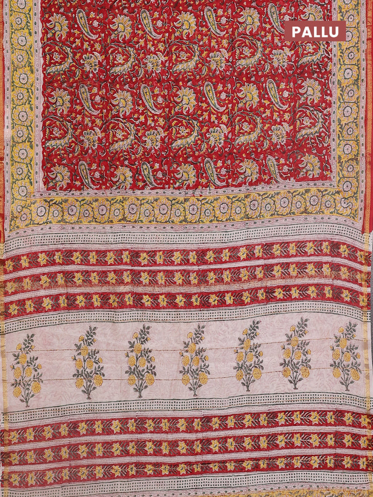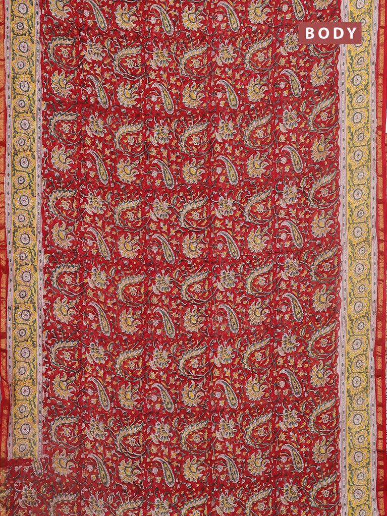 Chanderi bagru saree red and beige with allover kalamkari prints and small zari woven border