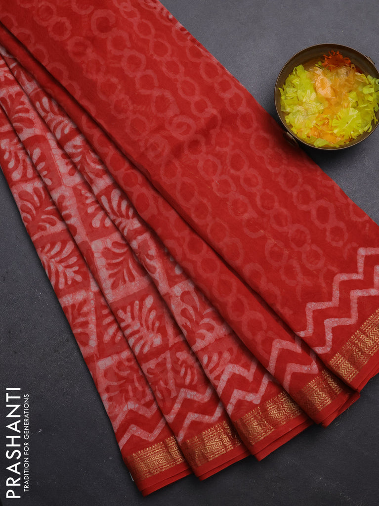 Chanderi bagru saree red with allover ikat prints and maheshwari border