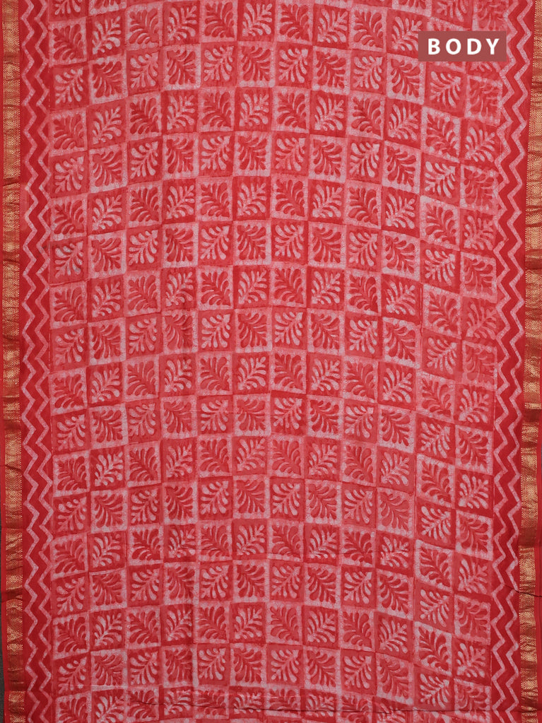 Chanderi bagru saree red and light pink with allover butta prints and small zari woven border