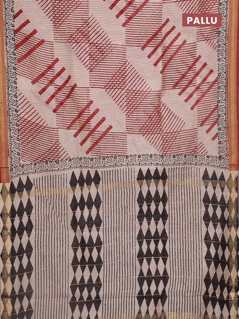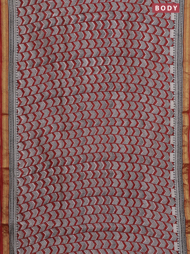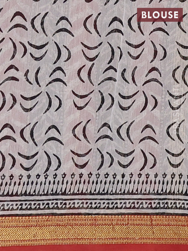 Chanderi bagru saree rustic maroon and beige with allover prints and maheshwari border