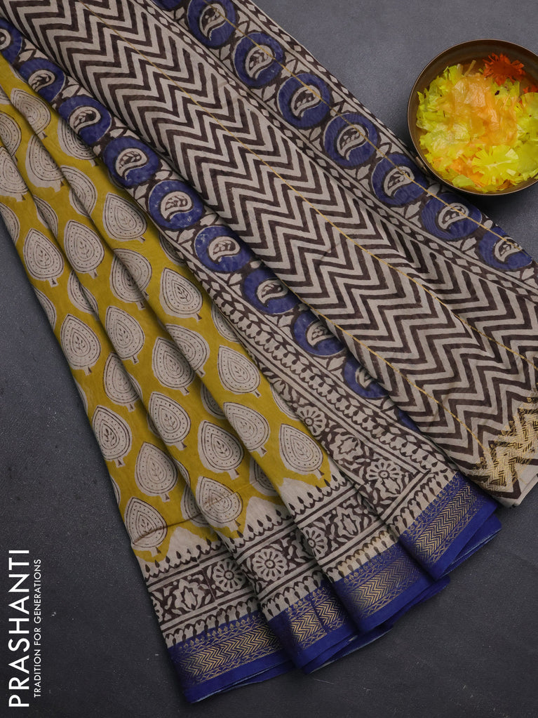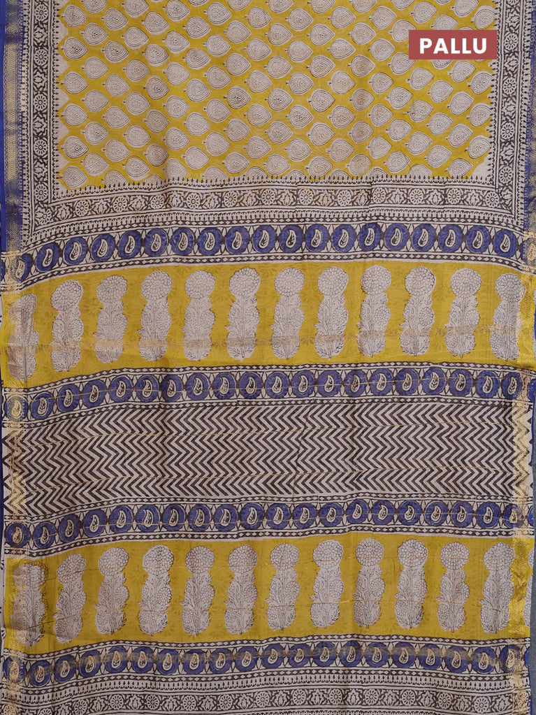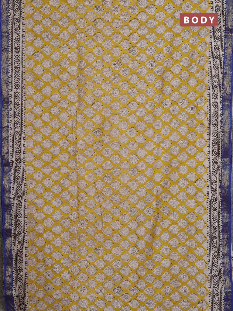 Chanderi bagru saree yellow and blue with allover butta prints and maheshwari border