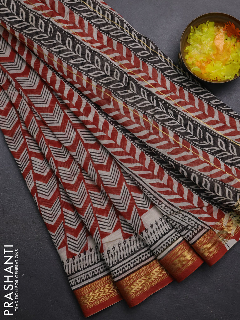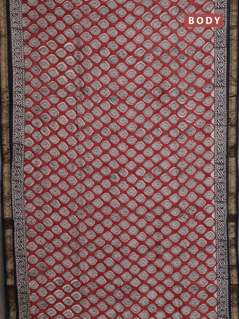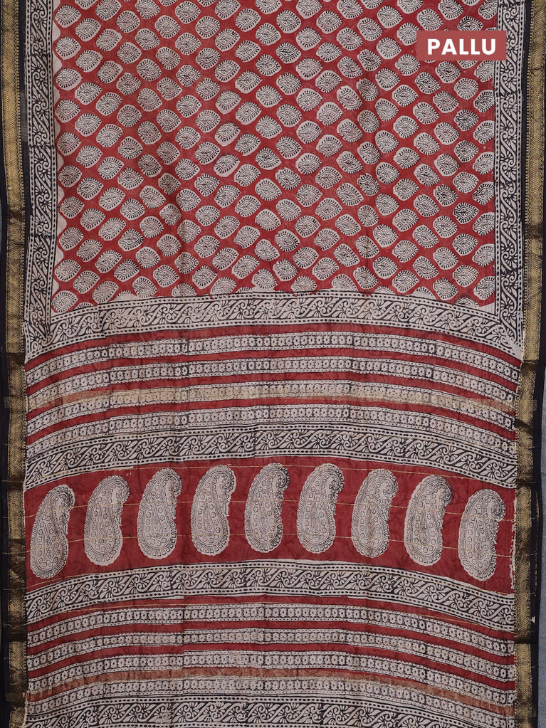 Chanderi bagru saree rust shade and black with allover butta prints and maheshwari border