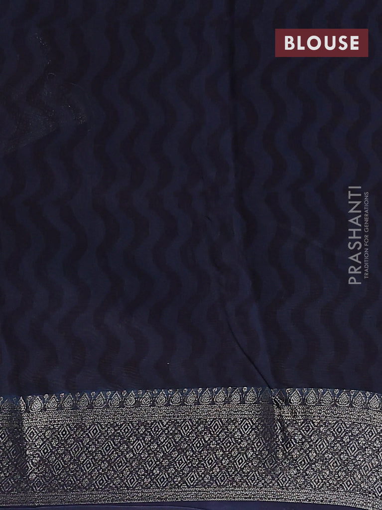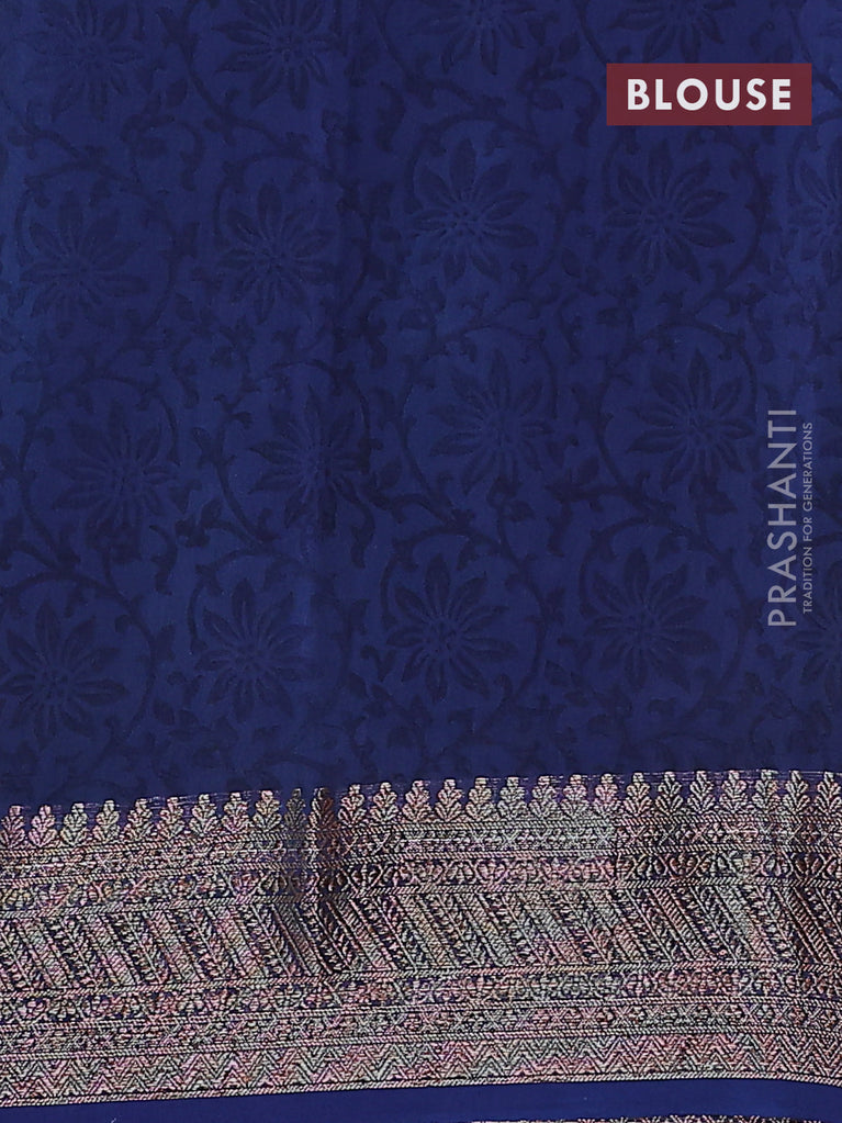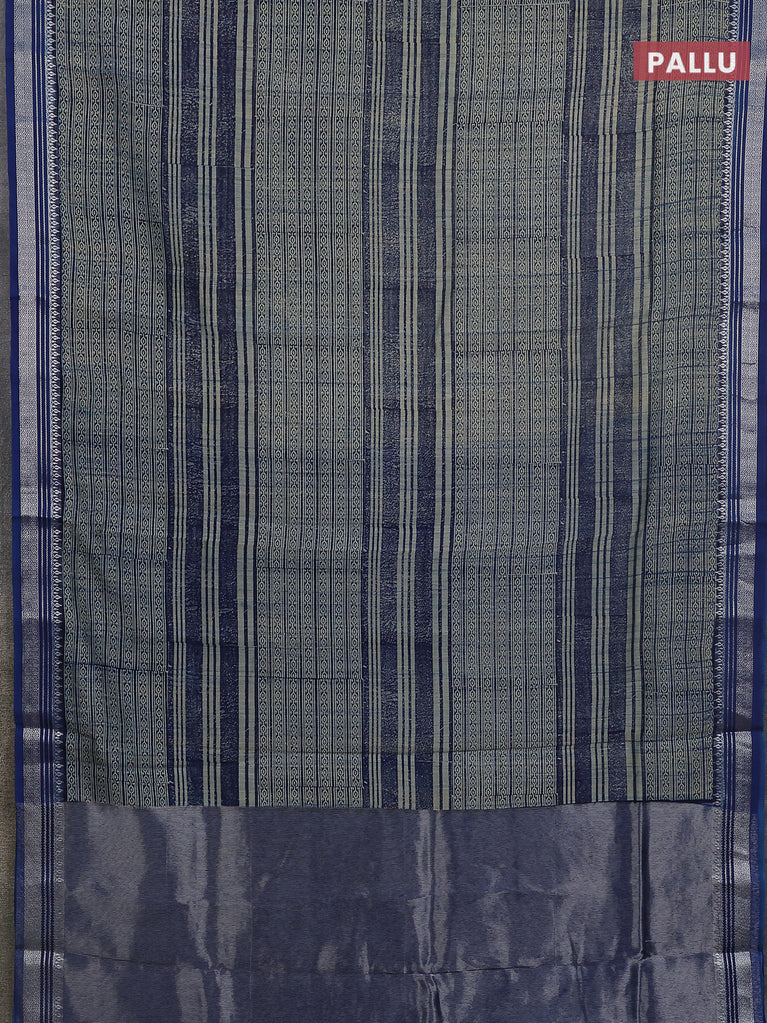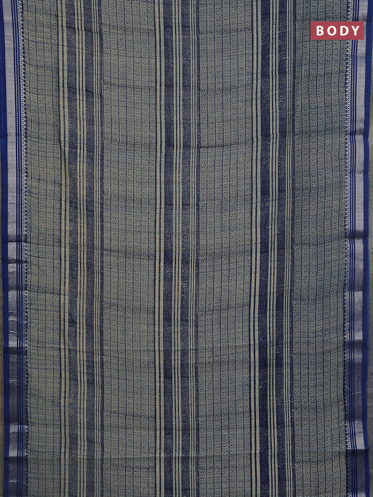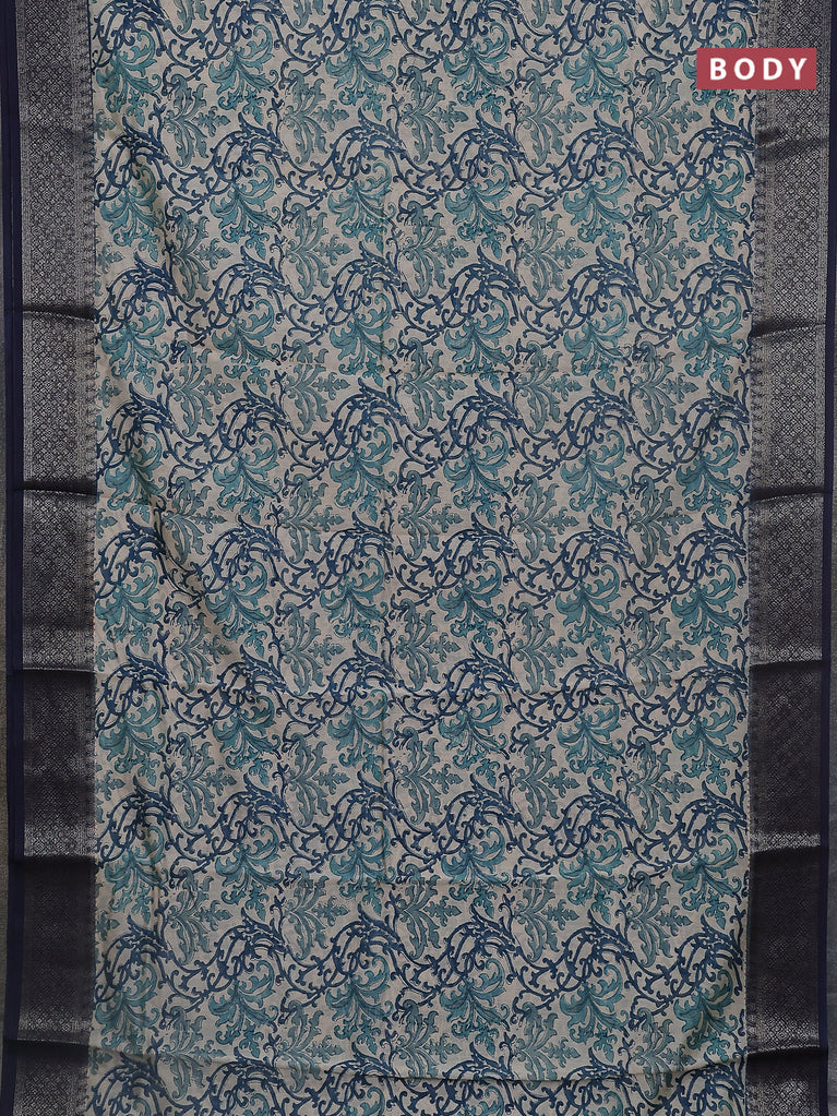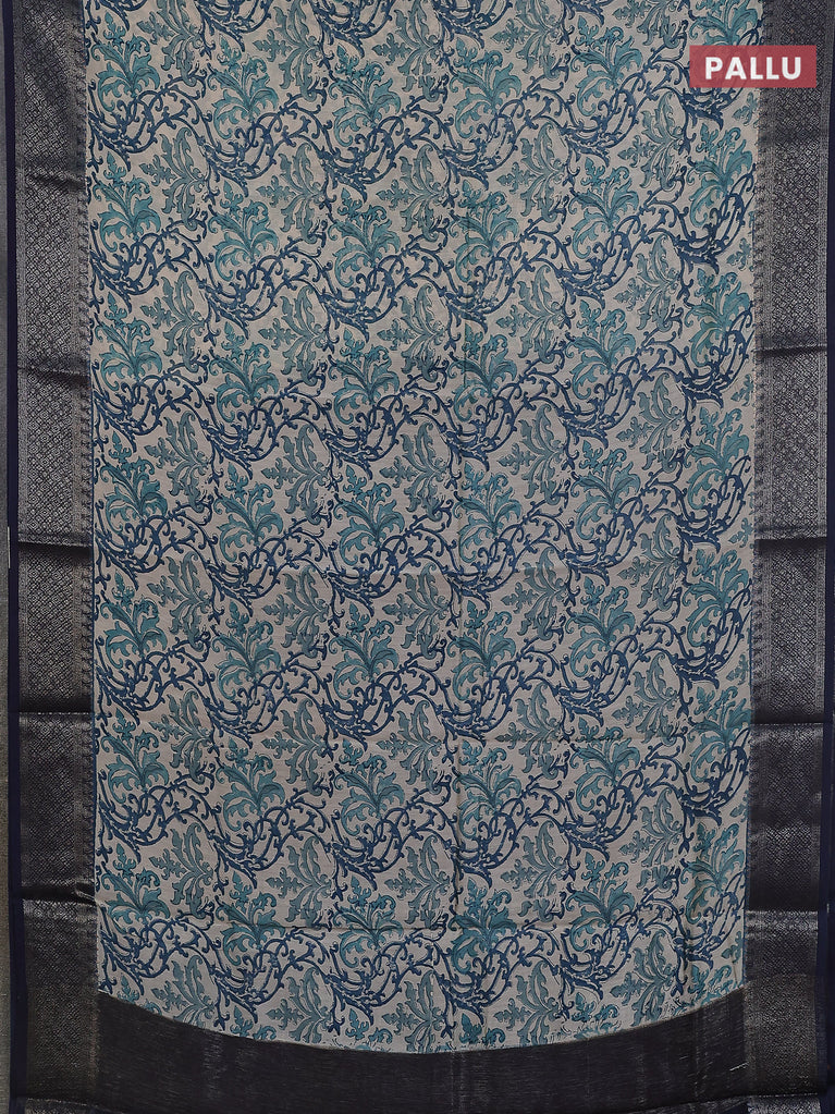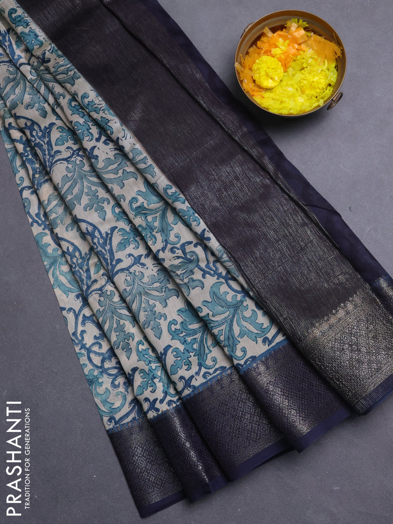 Chanderi silk cotton saree beige and navy blue with allover prints and banarasi style border