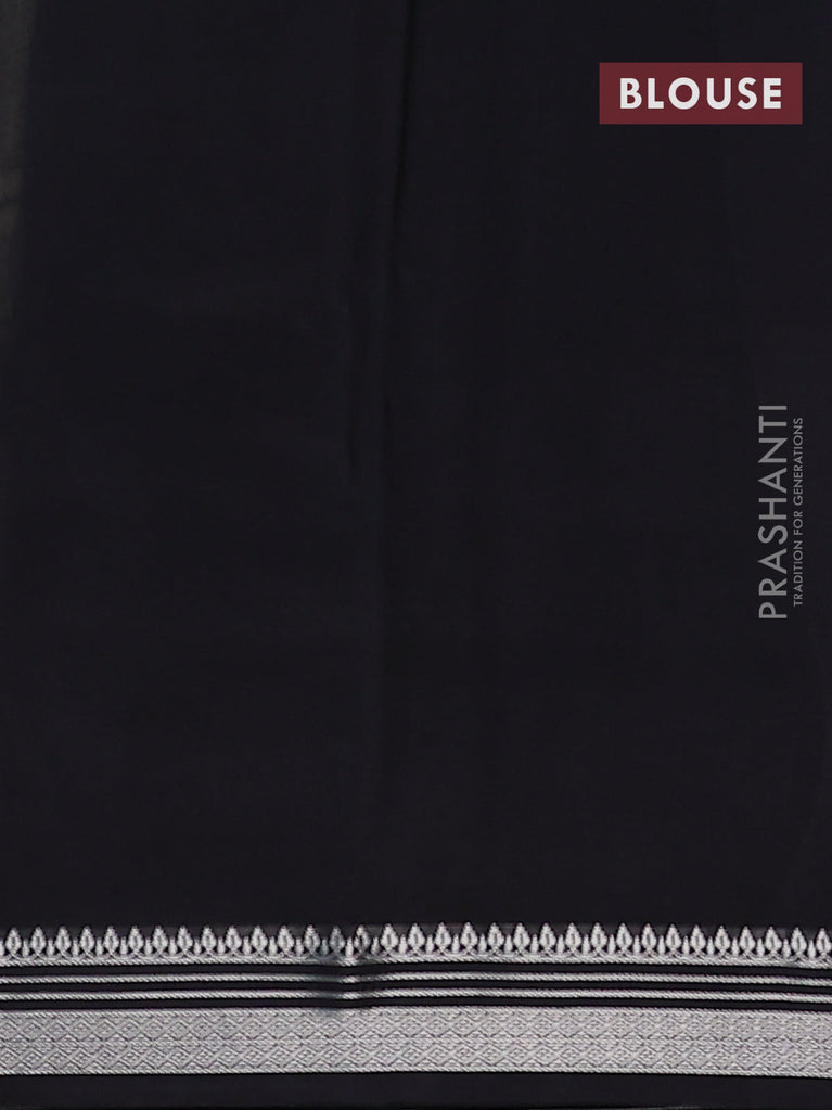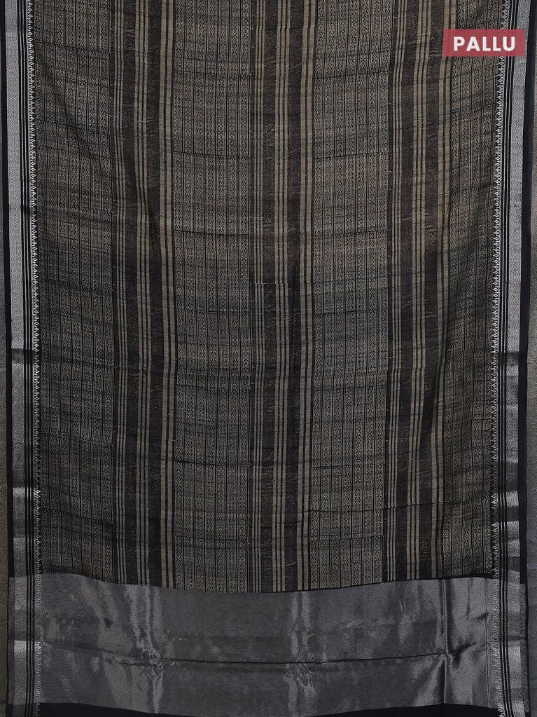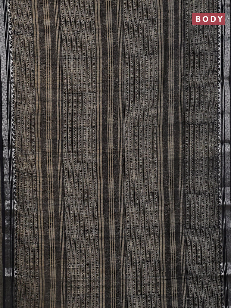 Chanderi silk cotton saree beige and black with allover prints and silver zari woven border