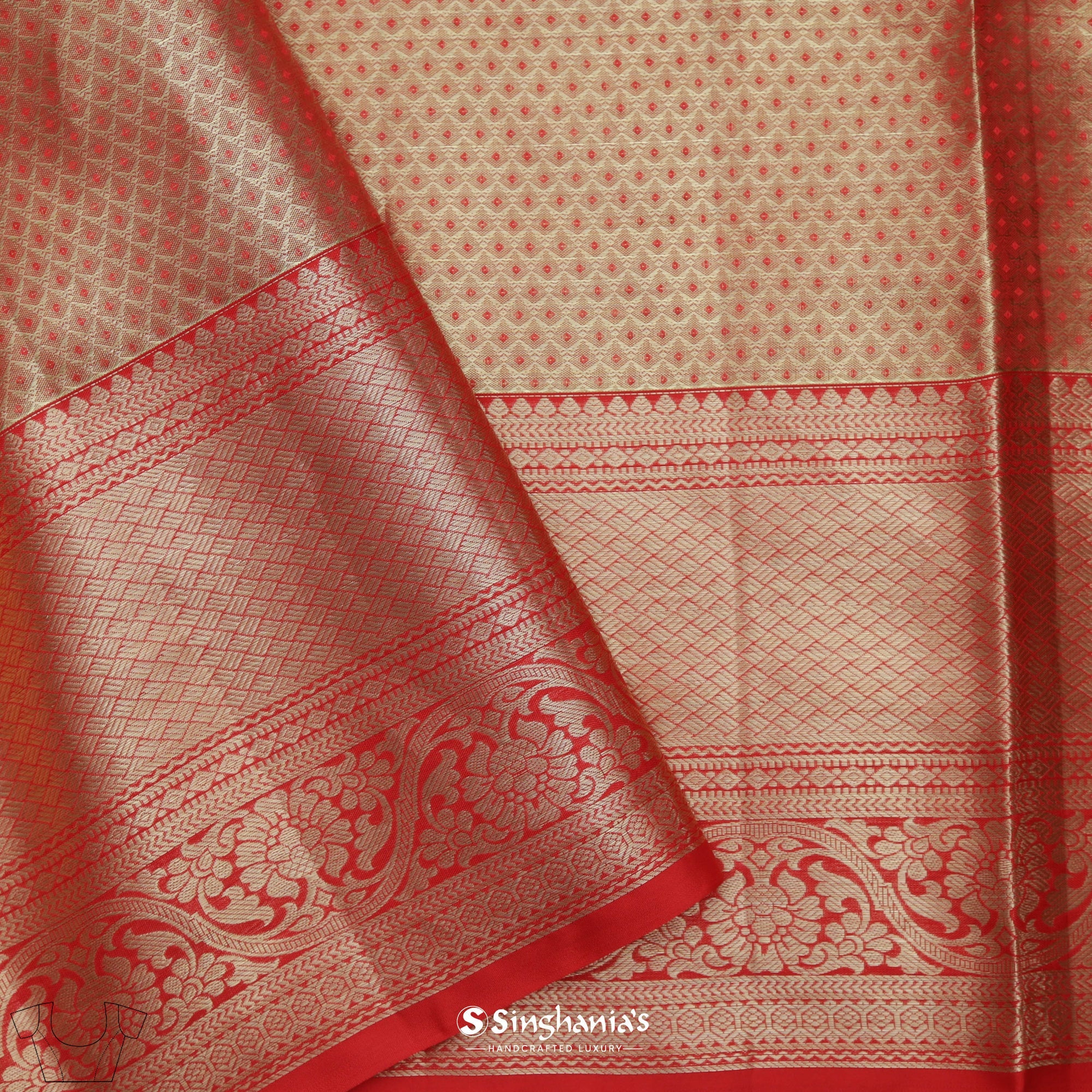 Gold-Red Tissue Kanjivaram Saree With Floral Jaal