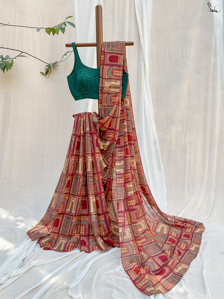 Saree: Ta, the model is wearing a size S blouse and the saree called Sitara Sa Basant