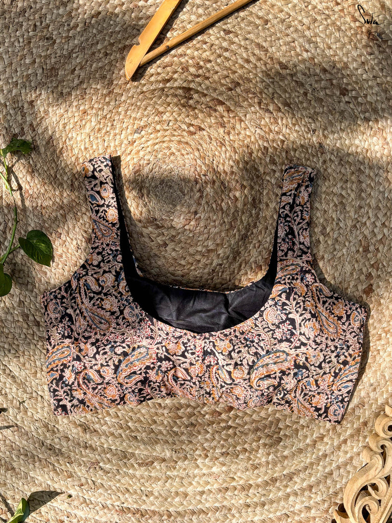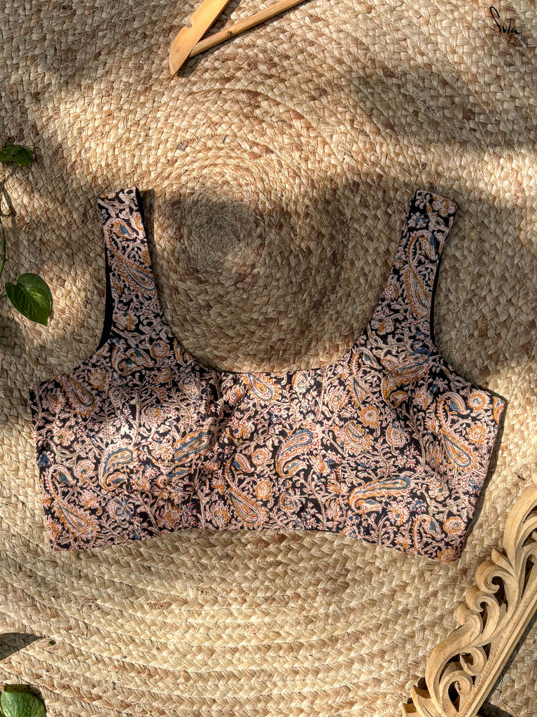 Bright, playful, and full of movement, this blouse mirrors the lively hues of Basant. The soft cotton fabric keeps it breathable, while the V-neck and quarter sleeves offer an easy, flattering fit. Side elastic adds gentle stretch, and the back keyhole detail finishes it with a touch of charm.