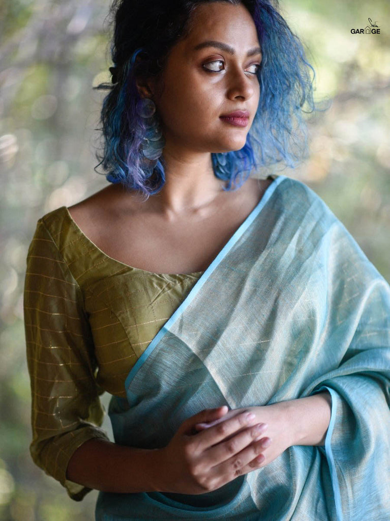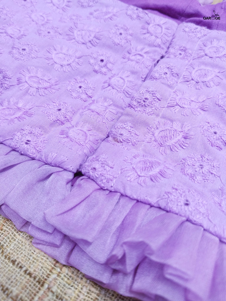 Cotton fabric dates back to some of the most ancient civilisations and it has a strong presence in the modern wardrobe as well. The incredible softness and lightness of cotton combined with its strength and versatility makes it one of the most popular choices, especially for the Indian climate. The comfort and the amazing feel that cotton offers in unparalleled! The fabric used for this blouse is a machine-embroidered cotton fabric which is also known as Hakoba cotton.The ruffle detailing on the blouse is made of organza fabric.Organza is a type of weave that creates light-weight, breathable, dreamy, translucent fabric that brings a certain ethereal charm to apparel. This weave also renders a characteristic stiffness, which beautifully comes together with the overall fluidity of the fabric. Organza can be made with different types of fibres. For this blouse, the organza weave is made of polyester.
