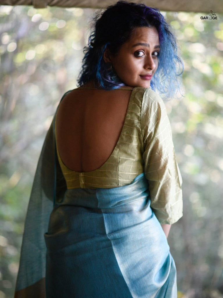 Su, the model is wearing size S blouse and the saree is Fireflies in the Garden Polka.