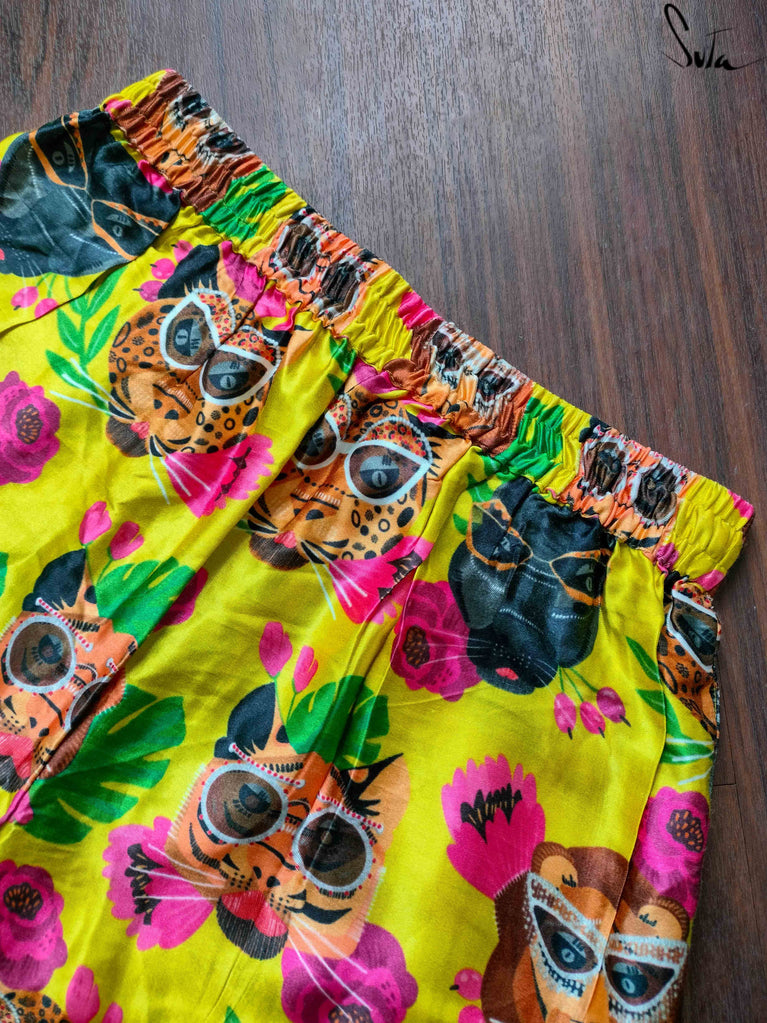 When the inhibitions are away, the cats come out to play! This beautiful collection of modal viscose separates celebrates the risk-takers, the rule-breakers, the untameable and all those who fearlessly wear their hearts on their sleeve. The vibrant colours and quirky prints are the perfect pick-me-up for your wardrobe and a must if you, like our fearless felines, believe in being your truest, most authentic self.