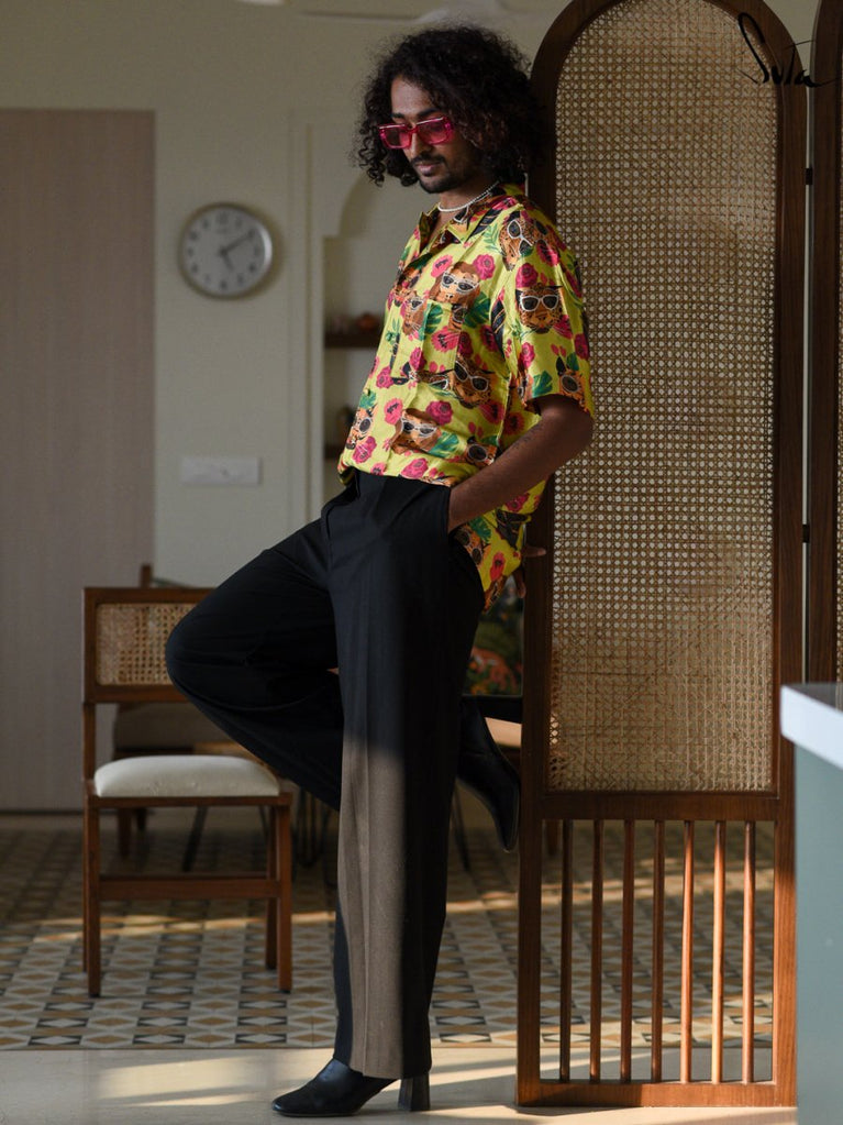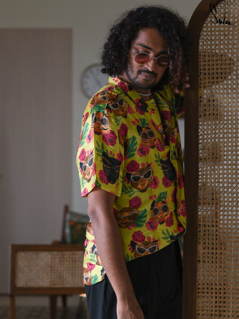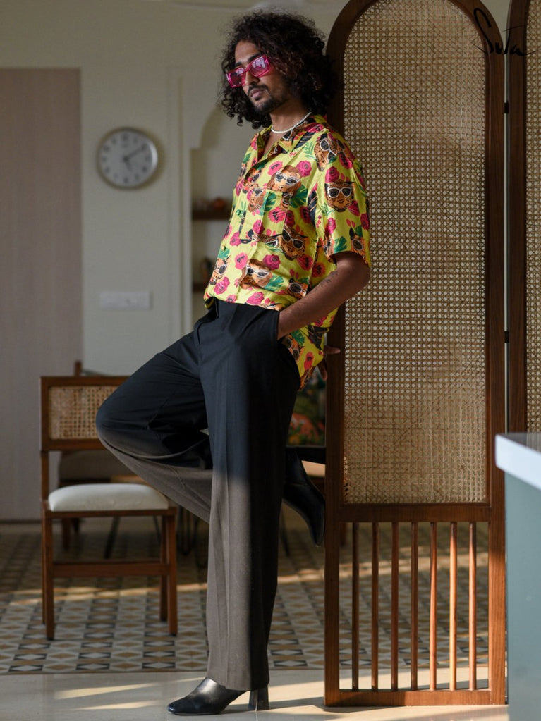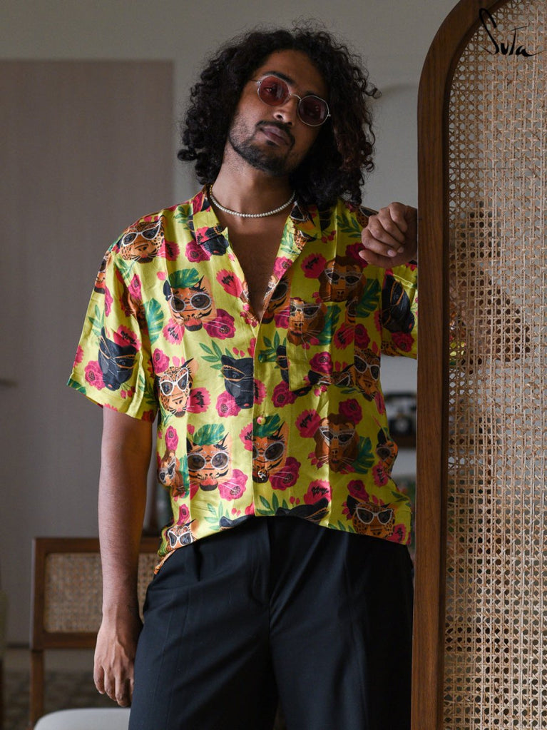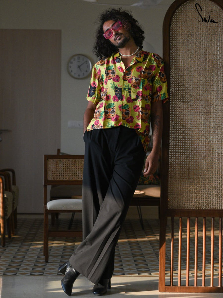 Be your most unconventional and creative self, when you're clad in this quirky printed modal shirt.