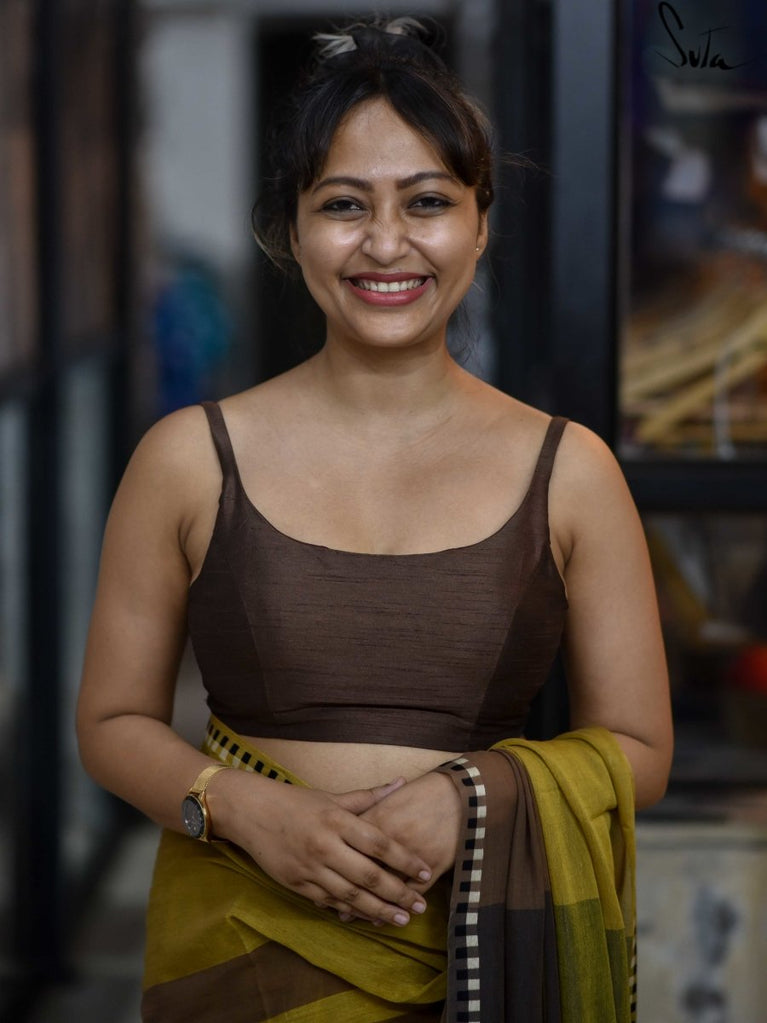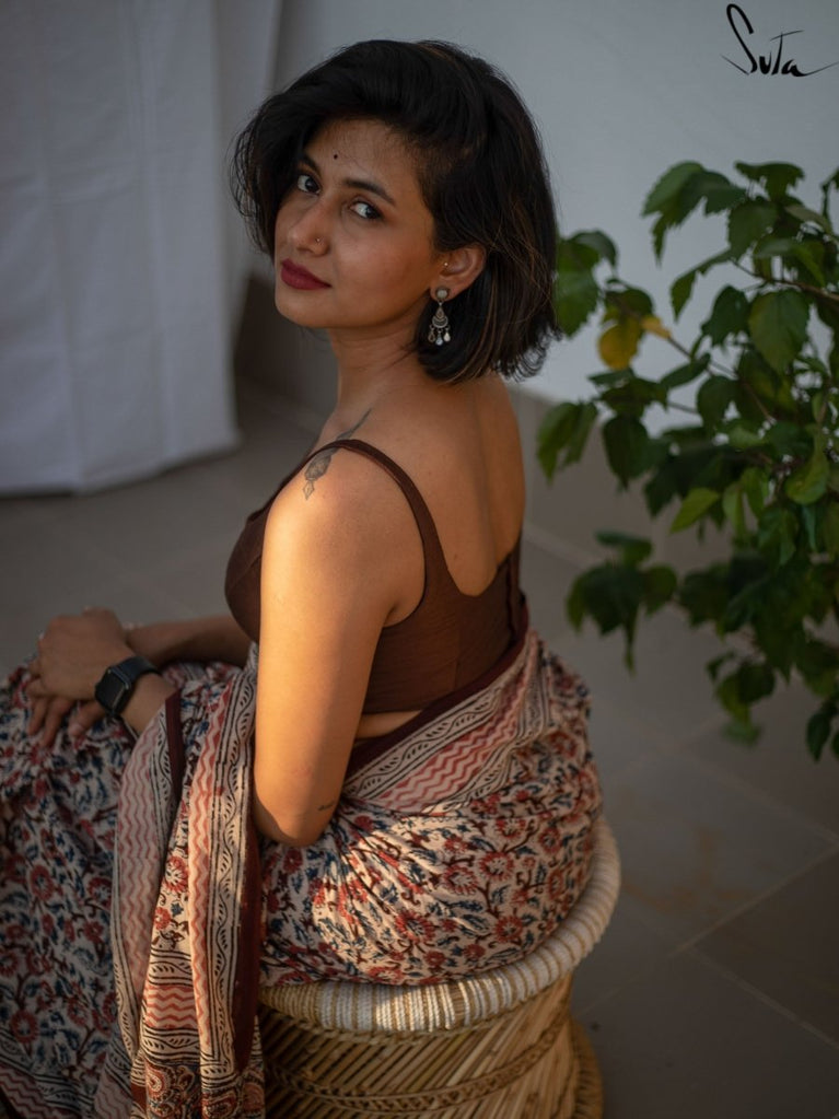 Blouse : Su ,the model is wearing size S blouse and the saree is Withered forest Swara , Whimsical Sitara
