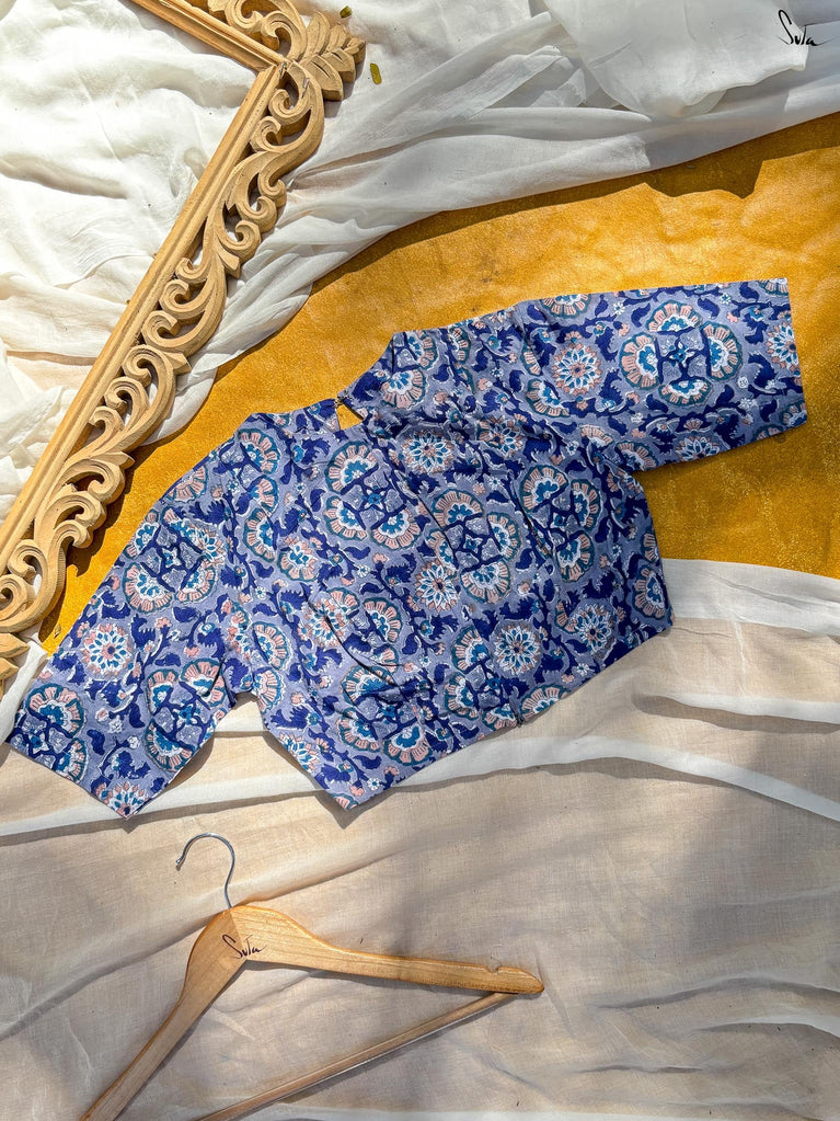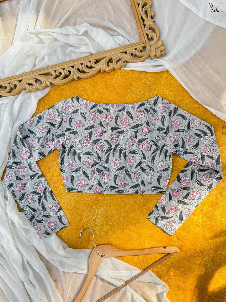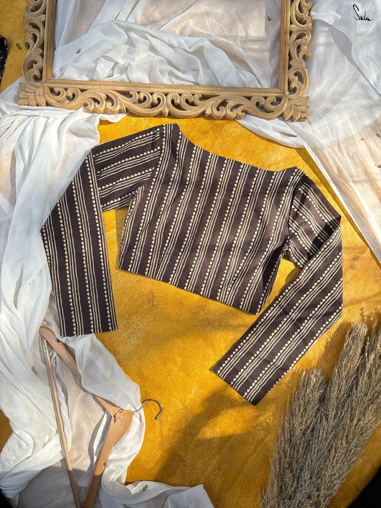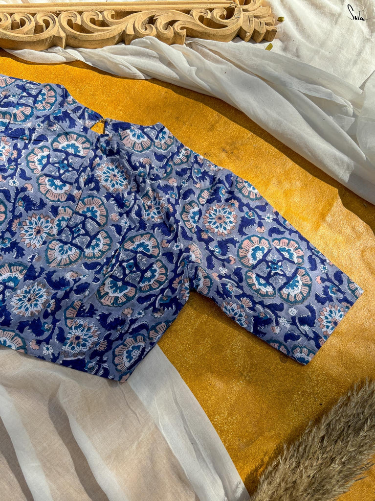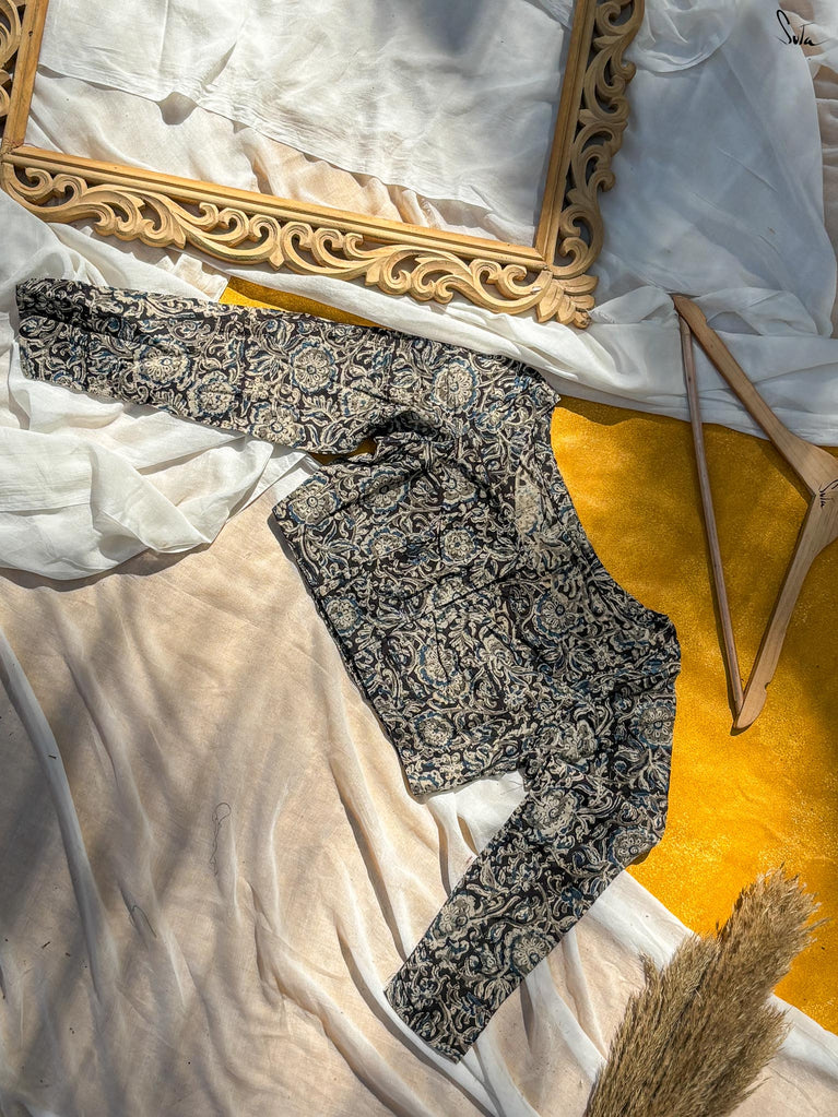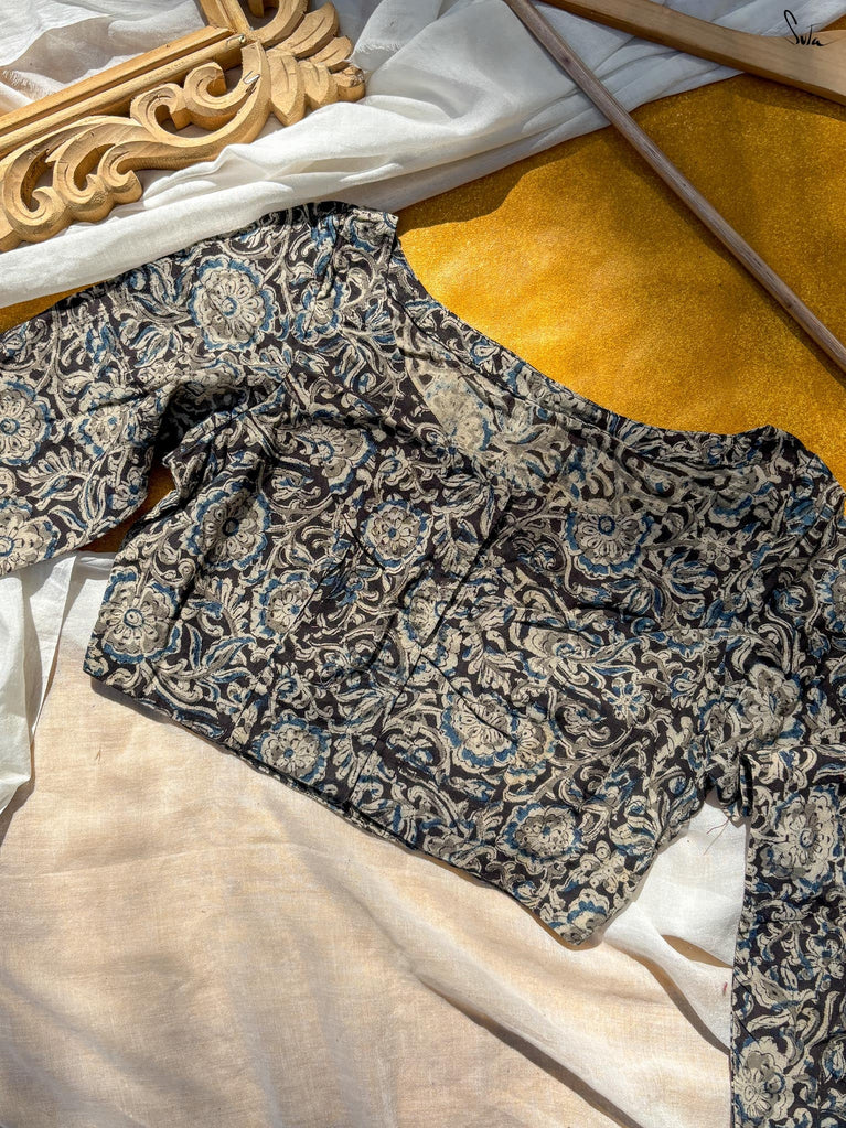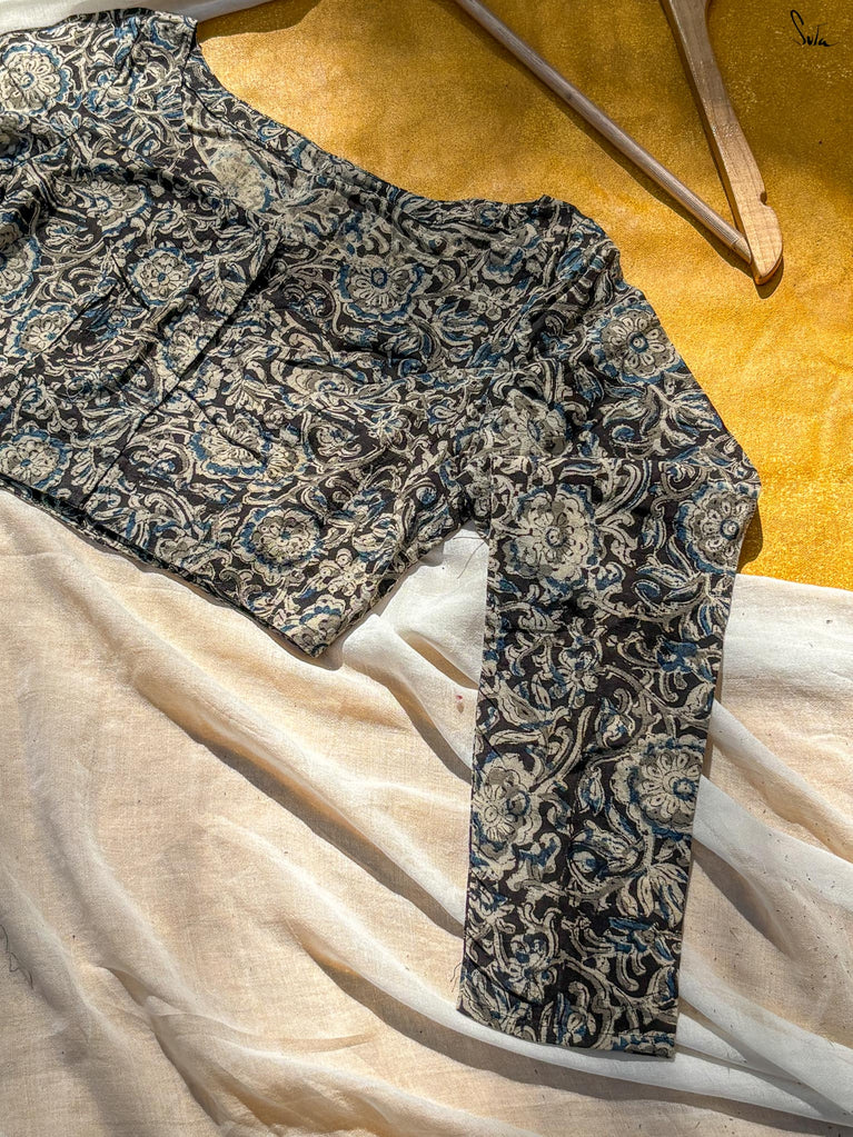 Around Bust: 84cm Waist: 68.5 cmShoulder: 31 cmSleeve Length: 51cm Sleeve Loose:20cm Armhole: 40 cmFront Neck Depth: 18 cmBack Neck Depth: 2 cmShoulder Strap: 3 cm Blouse Length: 35 cmNeck Line: round Neck Opening: Front Hook Type: Non Padded