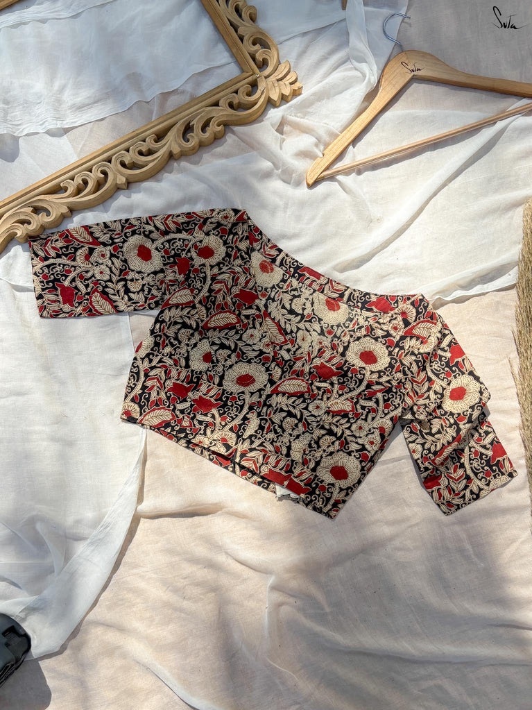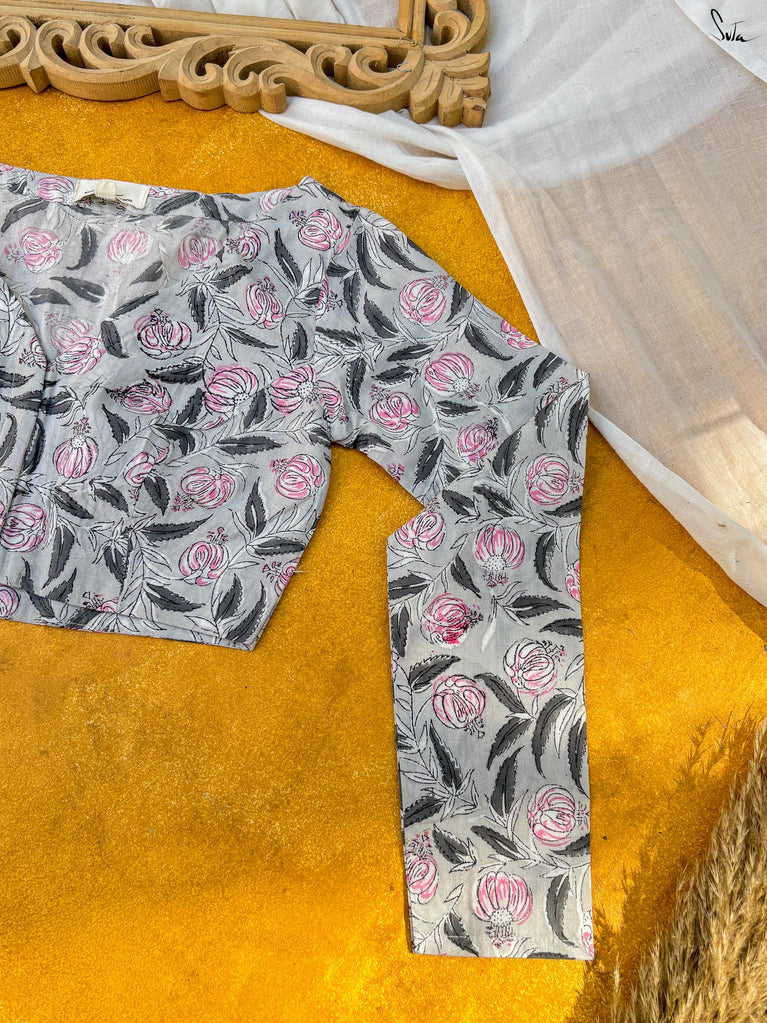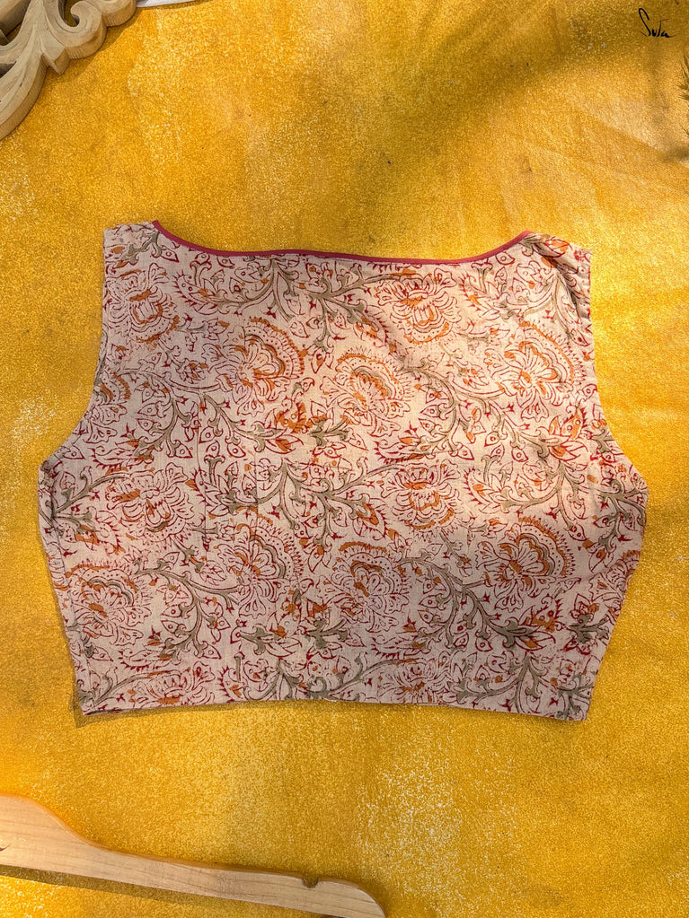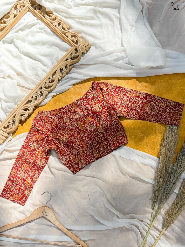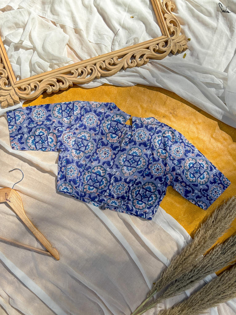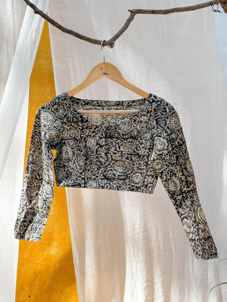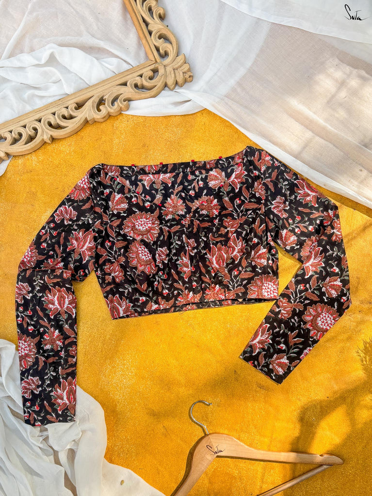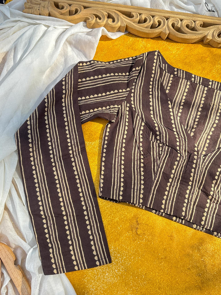 Around Bust: 84cm Waist: 68.5 cmShoulder: 31 cmSleeve Length: 51cm Sleeve Loose:20cm Armhole: 40 cmFront Neck Depth: 18 cmBack Neck Depth: 2 cmShoulder Strap: 3 cm Blouse Length: 35 cmNeck Line: round Neck Opening: Front Hook Type: Non Padded