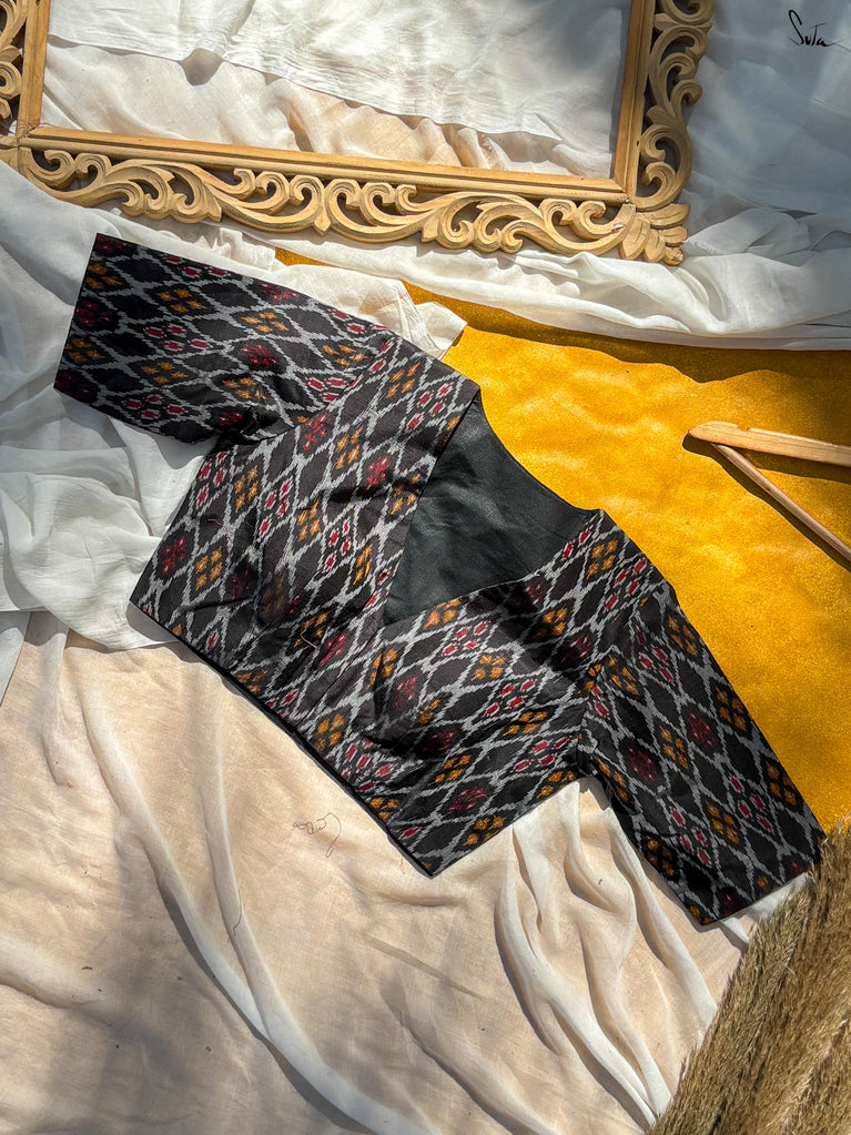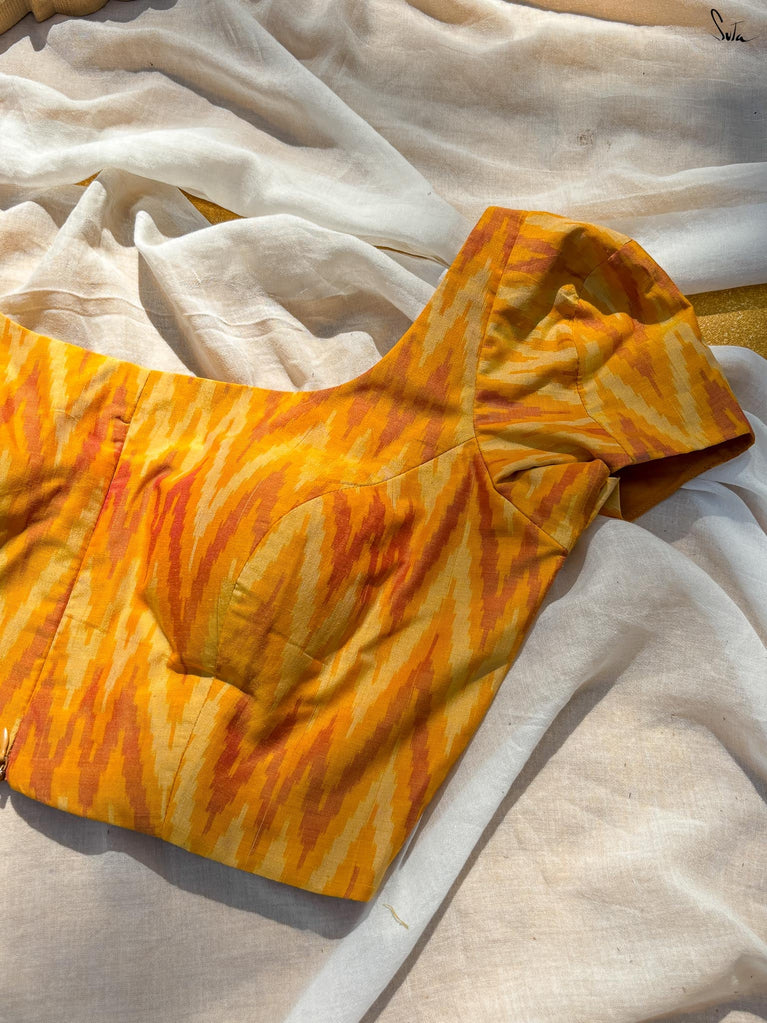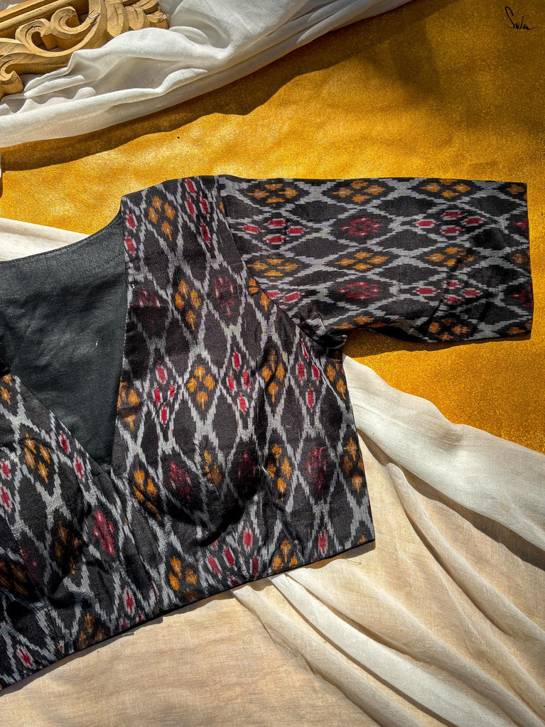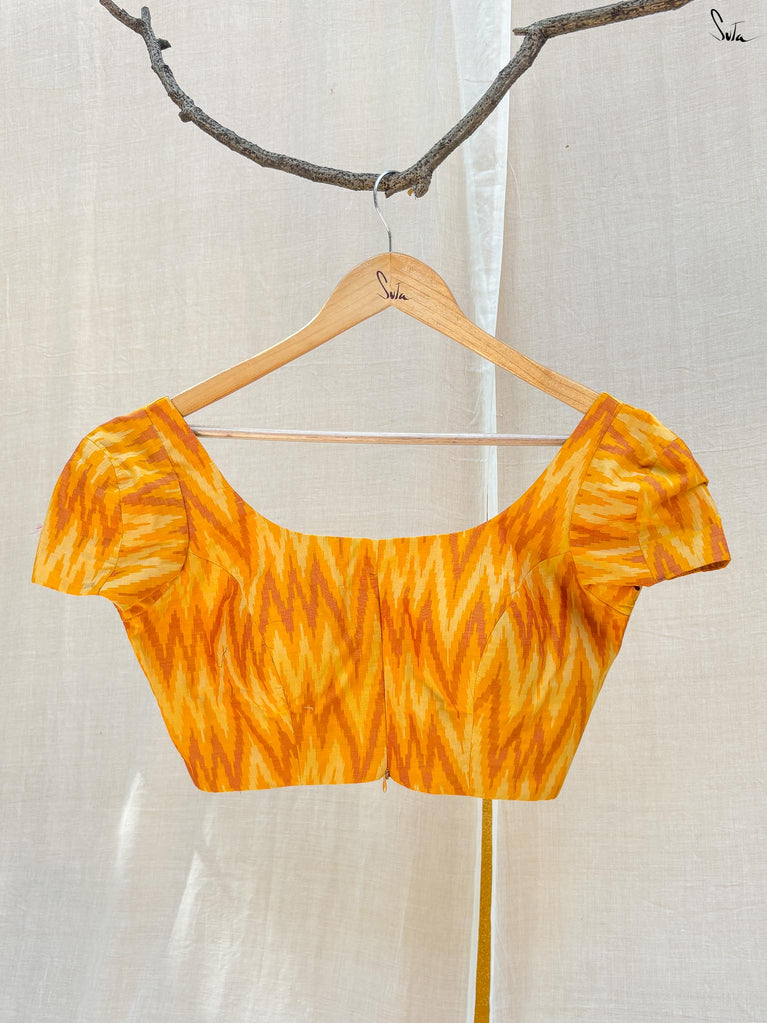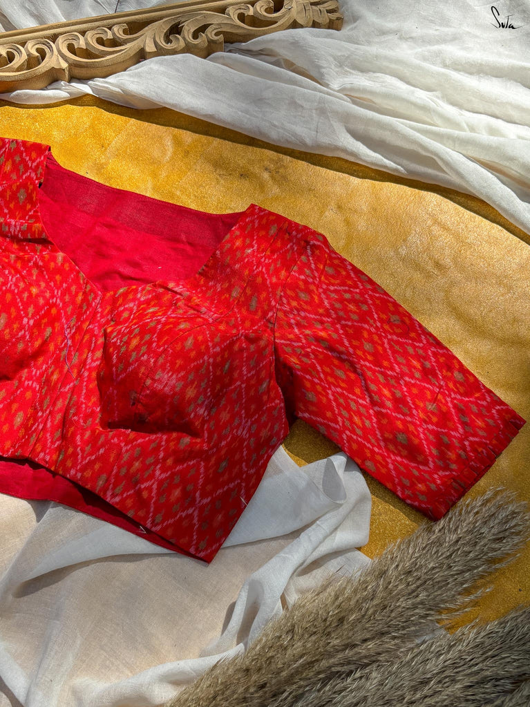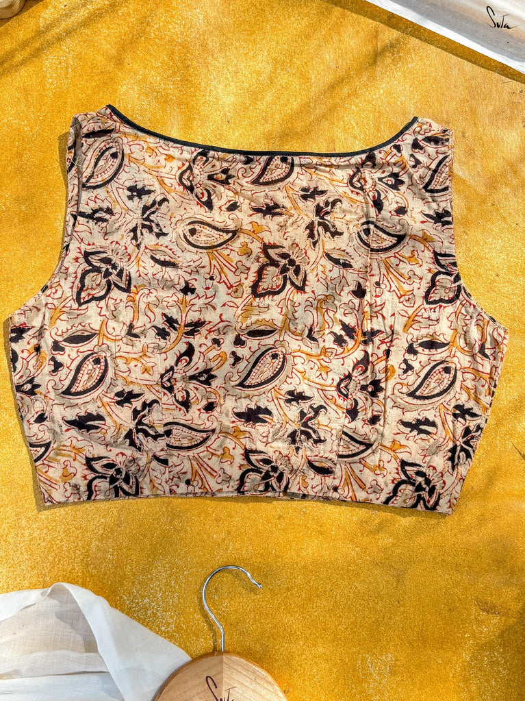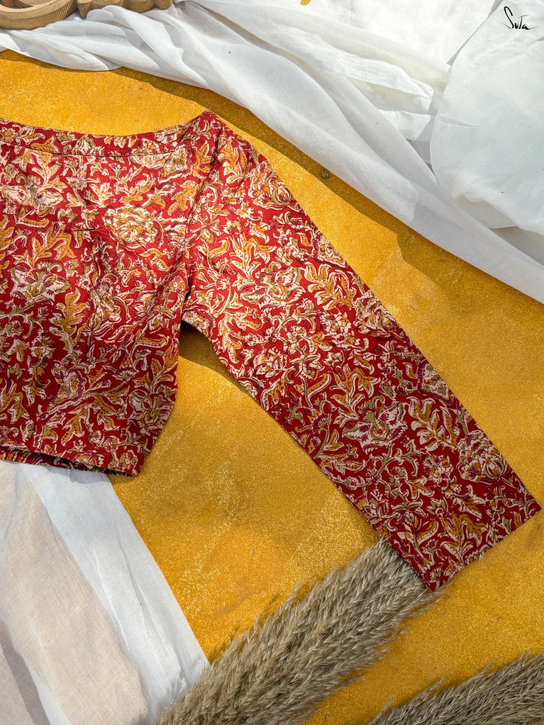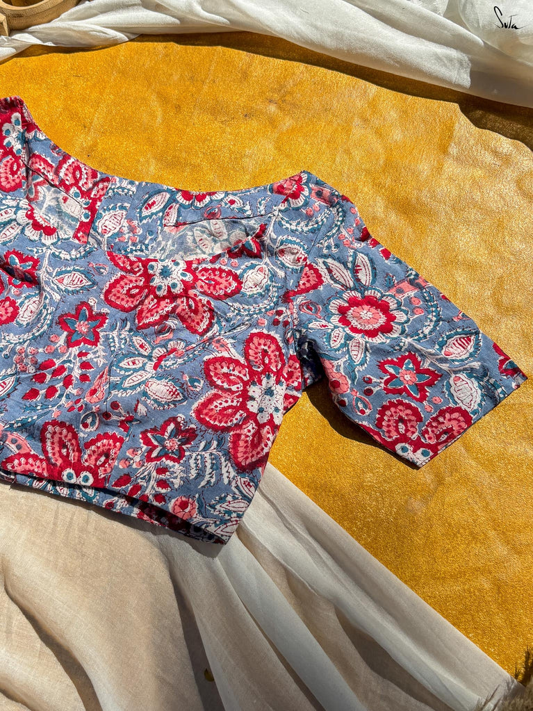 Around Bust: 84cm Waist: 68.5 cmShoulder: 31 cmSleeve Length: 51cm Sleeve Loose:20cm Armhole: 40 cmFront Neck Depth: 18 cmBack Neck Depth: 2 cmShoulder Strap: 3 cm Blouse Length: 35 cmNeck Line: round Neck Opening: Front Hook Type: Non Padded