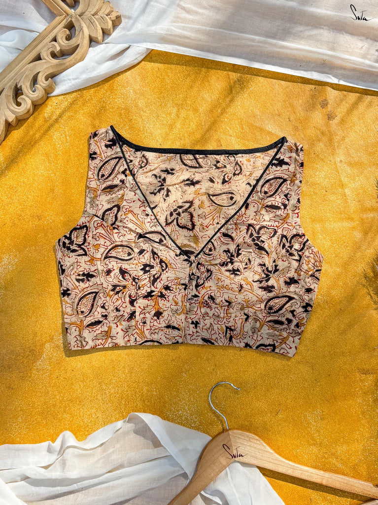 Around Bust: 84cm Waist: 68.5 cmShoulder: 34cmSleeve Length:56cm Sleeve Loose:22cm Armhole: 38cmFront Neck Depth: 25cmBack Neck Depth: 4 cmShoulder Strap: 3 cm Blouse Length: 36 cmNeck Line: Neck V neck Opening: front hook Type: Non Padded