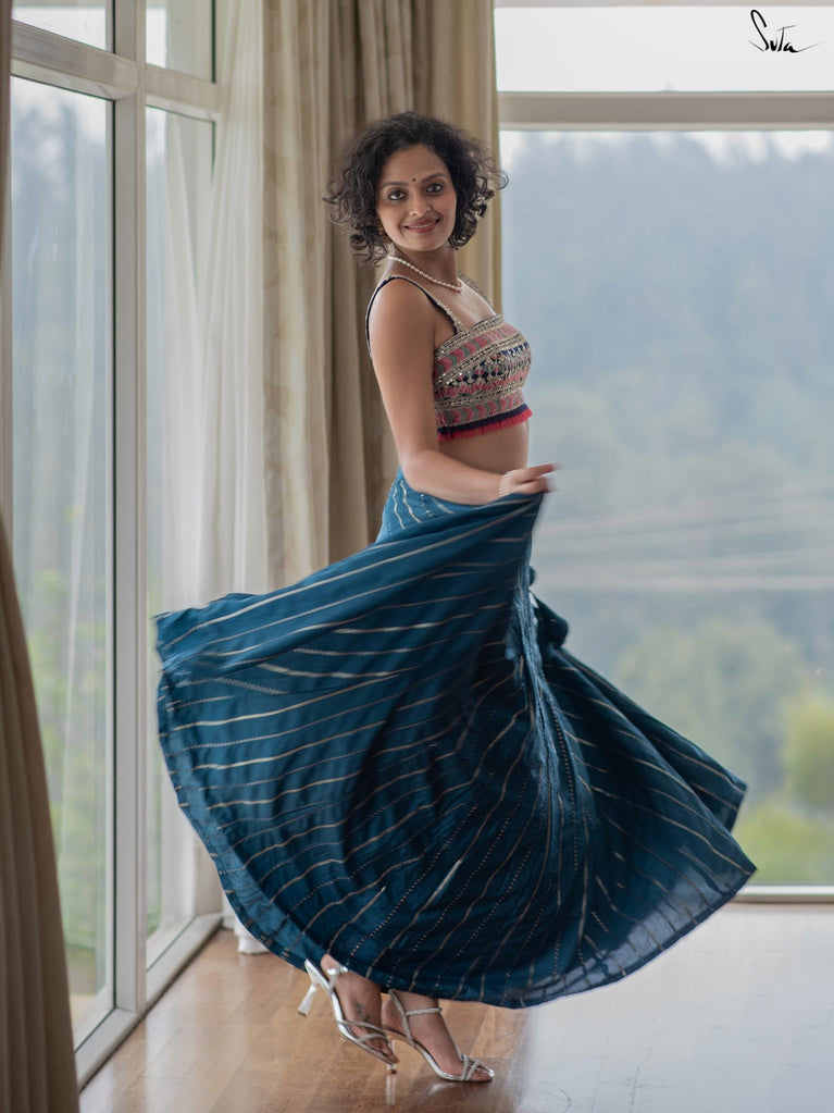 Uncover your hidden glam with the 'Damini Rekha' lehenga, an exquisite machine-embroidered masterpiece, featuring a stunning navy blue hue. This art silk lehenga also features a side zip and knot opening, making your inner style shine through every outing!