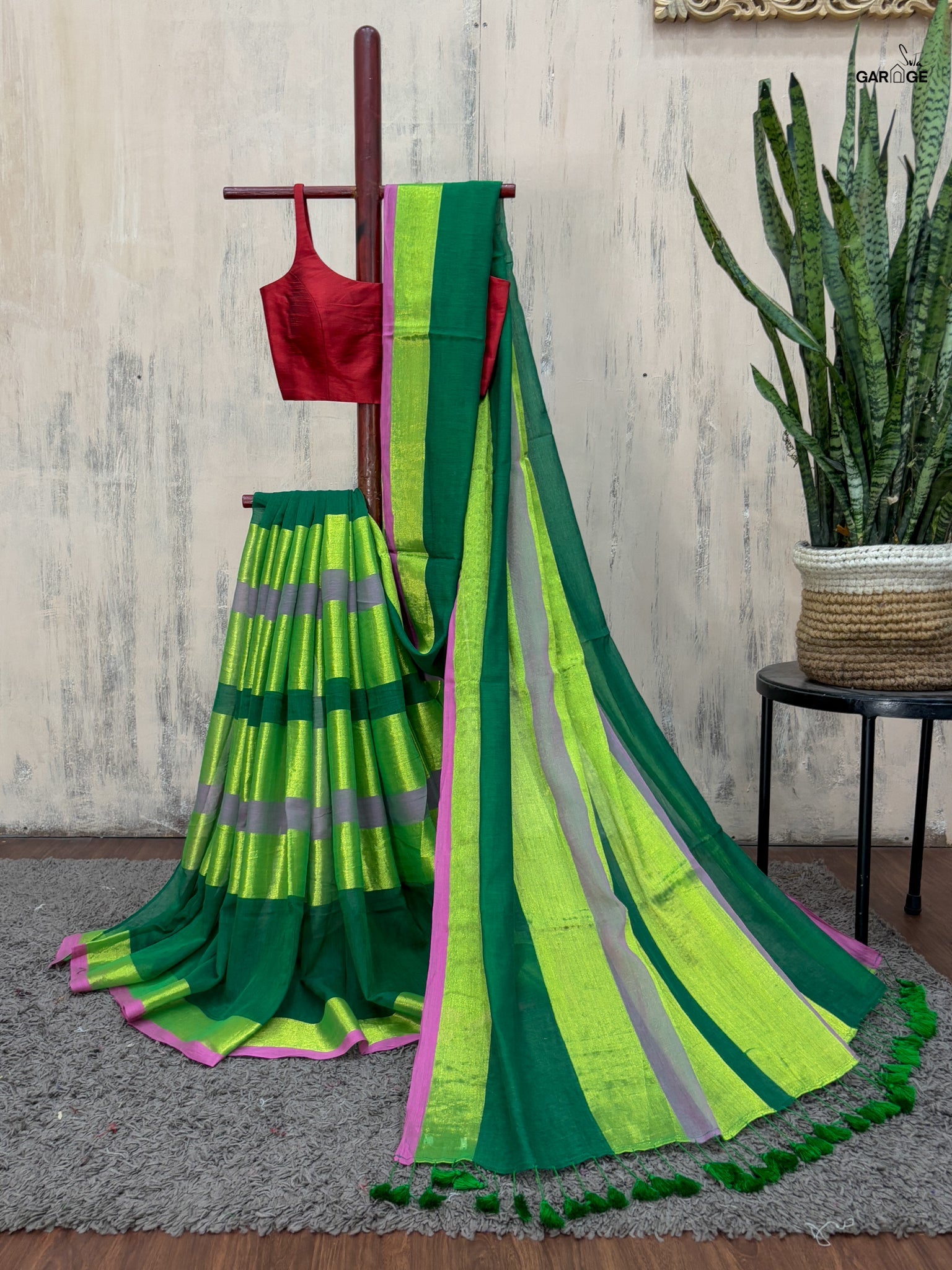 One of the most popular natural fibres in the world, cotton is hailed for its beauty, comfort, durability and versatility. Cotton is also naturally sustainable and its cultivation supports local farmers and communities. A low maintenance fabric, cotton is also hypoallergenic, making it the perfect choice around the year. The addition of zari adds a delicate but regal sheen, which makes these garments ideal for casual or occasion-wear.