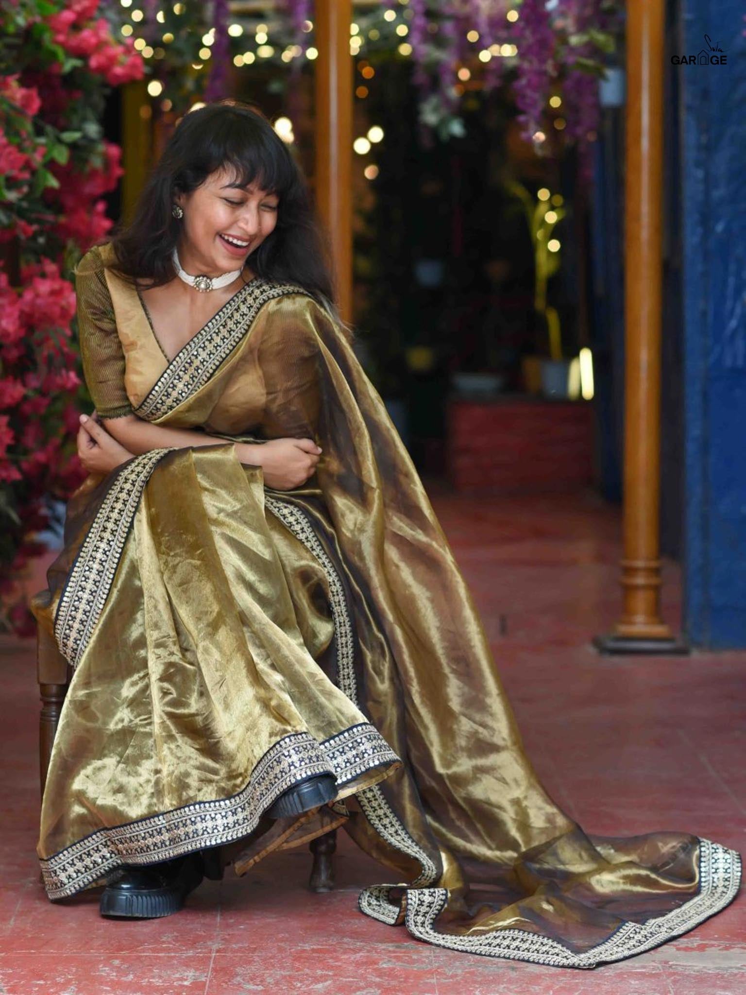 The Chanderi fabric, which combines pure silk on the warp and zari on the weft, radiates light from within and stands out in the most delicate way. The sarees are painstakingly handwoven, with master weavers dedicating a few days to each piece. In fact, the tradition of Chanderi weaving dates back to the 13th century. In the 1350s, Kosthi weavers migrated to Chanderi, a town in Madhya Pradesh, from Jhansi, from where they propagated this weave. It is said that the royals of several dynasties famously favoured Chanderi fabrics for their richness and utility in the searing hot summers of the plains. Suta has further added to the festive allure of the fabric with delicate embroidered lace embellishments.