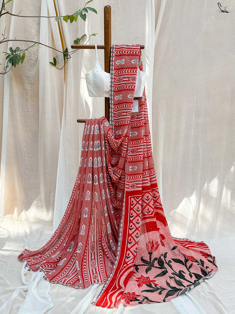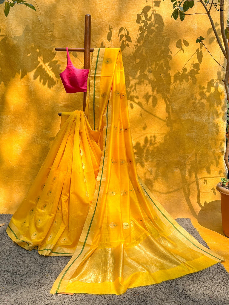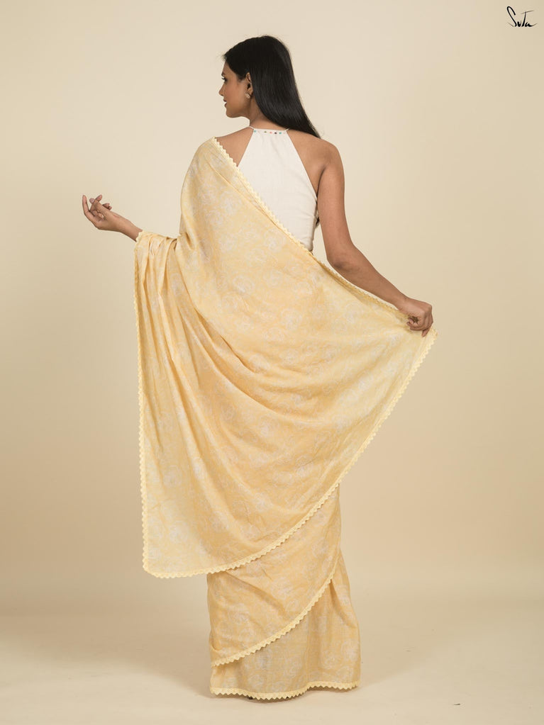Note: Our mul sarees are slightly transparent, it’s the nature of the fabric and part of its soft, airy charm.