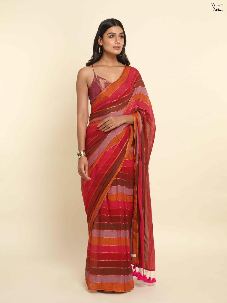 At Suta, we have taken this piece of innovation and made it into our very own fabric by combining modal yarn and made-in-heaven mul yarn together to create a very special product. The coming together of a new-age yarn and the most loved mul yarn is truly a magical thing and the outcome is spectacular. Good clothes are meant to not just make you look good but also make you feel good from inside and this eco-friendly twist to your favourite mul saree will achieve exactly that!