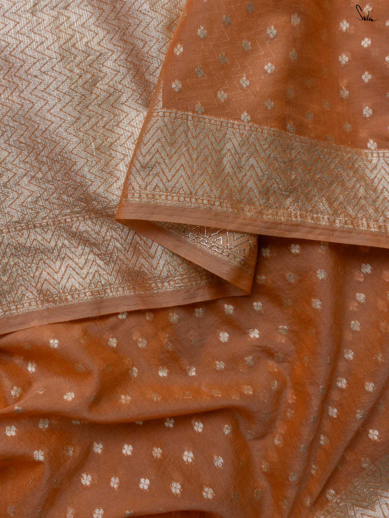 This brown made-in-heaven mul saree in screen printed design is all heart!