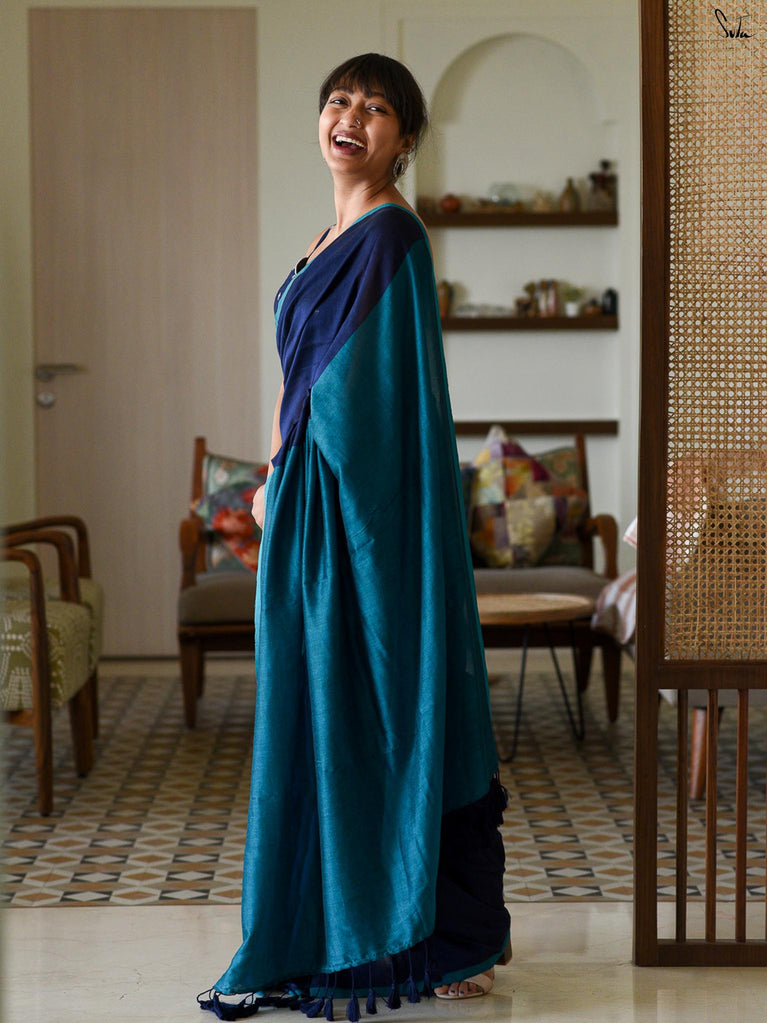 Cotton fabric dates back to some of the most ancient civilisations and it has a strong presence in the modern wardrobe as well. The softness and lightness of cotton combined with its strength and versatility makes it one of the most popular choices, especially for the Indian climate. We took this simple, elegant fabric and combined it with acrylic for that added sheen and voila! We love what we see and the saree falls so beautifully that it feels like second-skin!