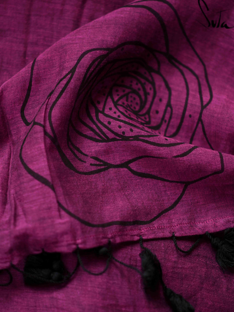 This maroon made-in-heaven mul saree with screenprinted design is simply dreamy!