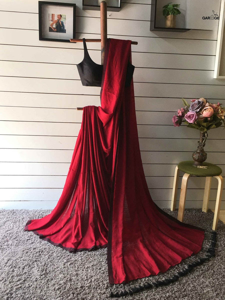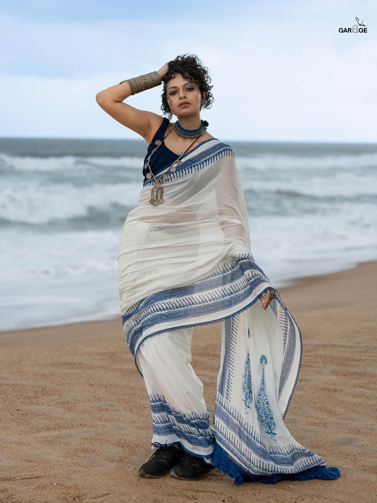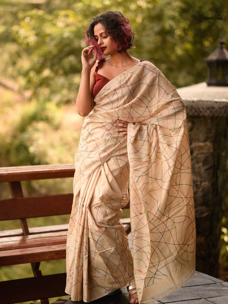 Cotton fabric dates back to some of the most ancient civilisations and it has a strong presence in the modern wardrobe as well. The softness and lightness of cotton combined with its strength and versatility makes it one of the most popular choices, especially for the Indian climate. We took this simple, elegant fabric and combined it with acrylic for that added sheen and voila! We love what we see and the saree falls so beautifully that it feels like second-skin!