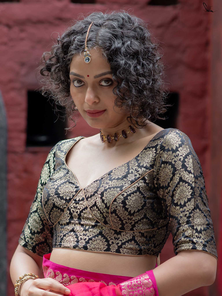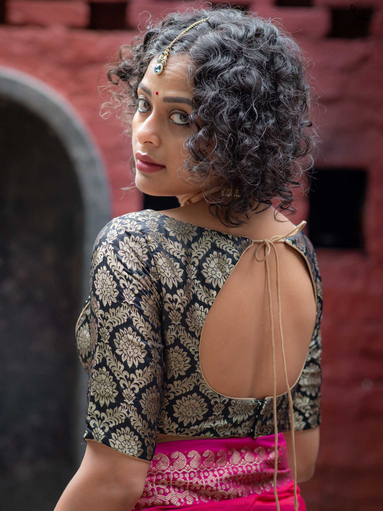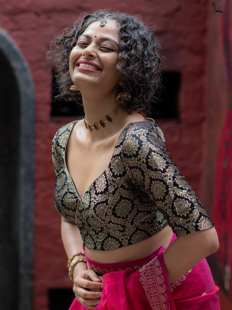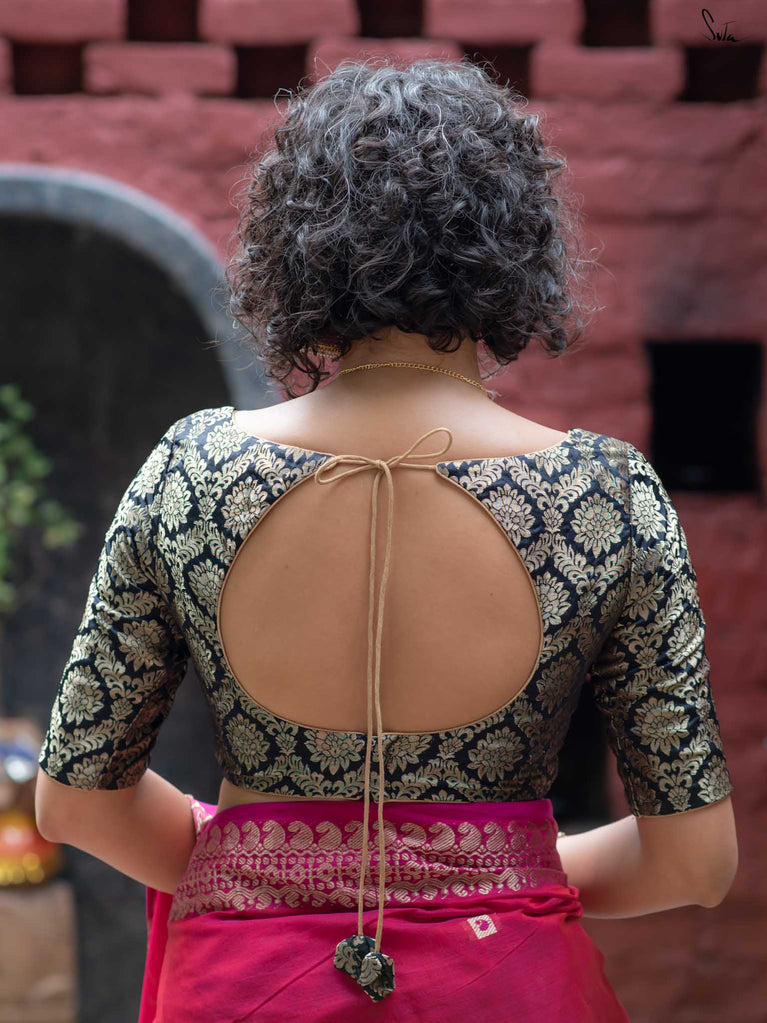 Bright pink viscose blouse with intricate zari embroidery. Modern cuts designed to flatter your silhouette perfectly. Soft fabric keeps you cool and comfortable all day.