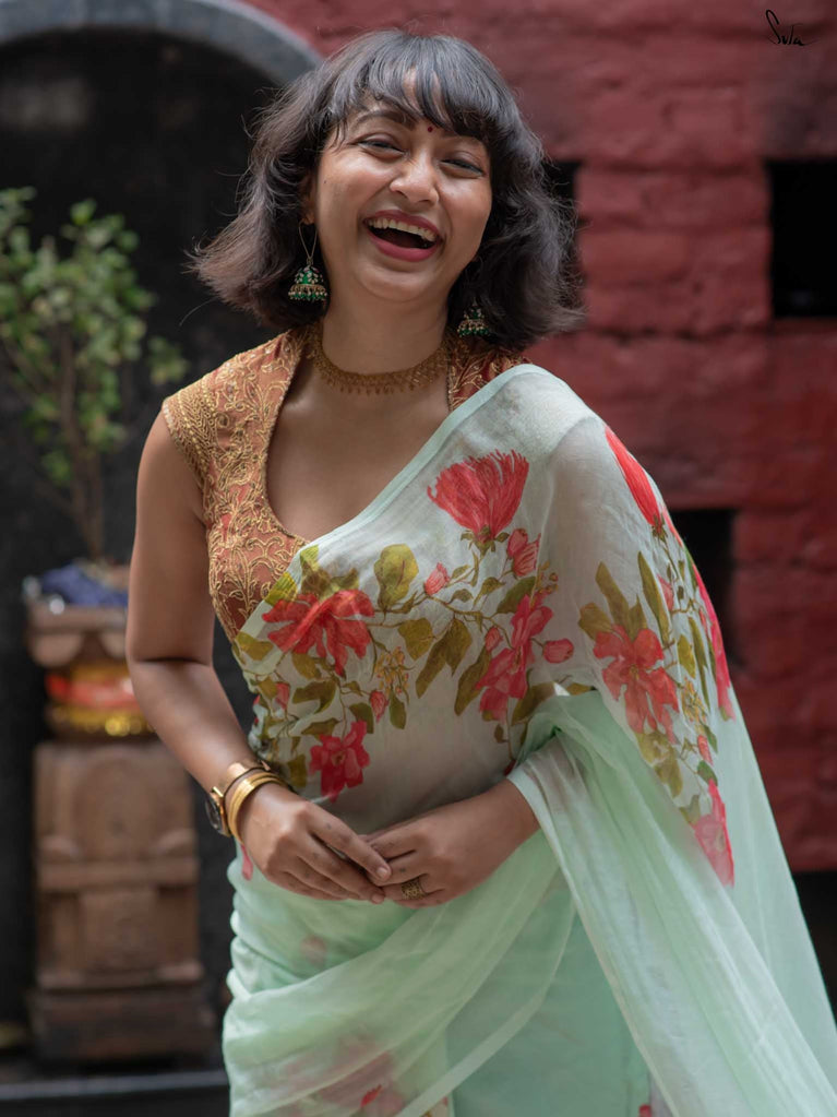Sutas ˜made in heaven mul cotton, is also known as mul mul in West Bengal. The fabric is buttery soft and has a delicate beauty. Its weave is very fine and this lends a very fluid texture to the fabric, which makes draping it a breeze. It truly is like a hug that wraps you in its love.