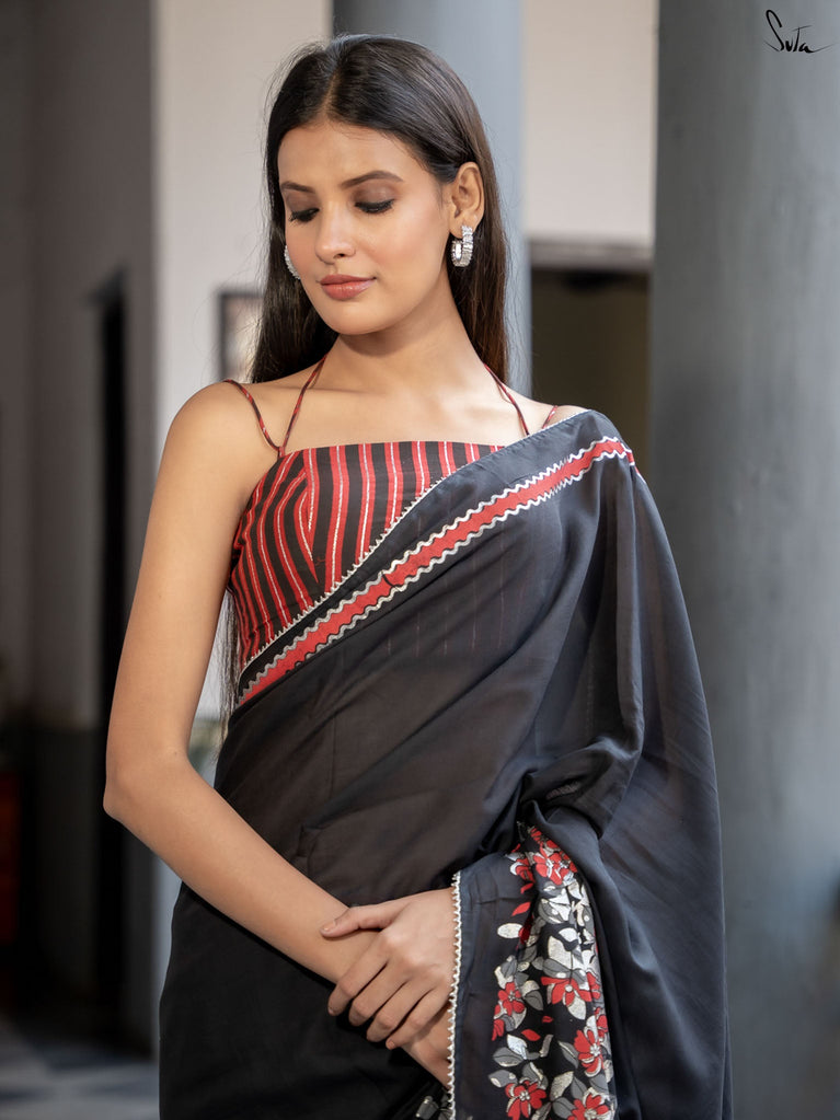 Note: Suta Garage sarees may or may not have fall and edging.