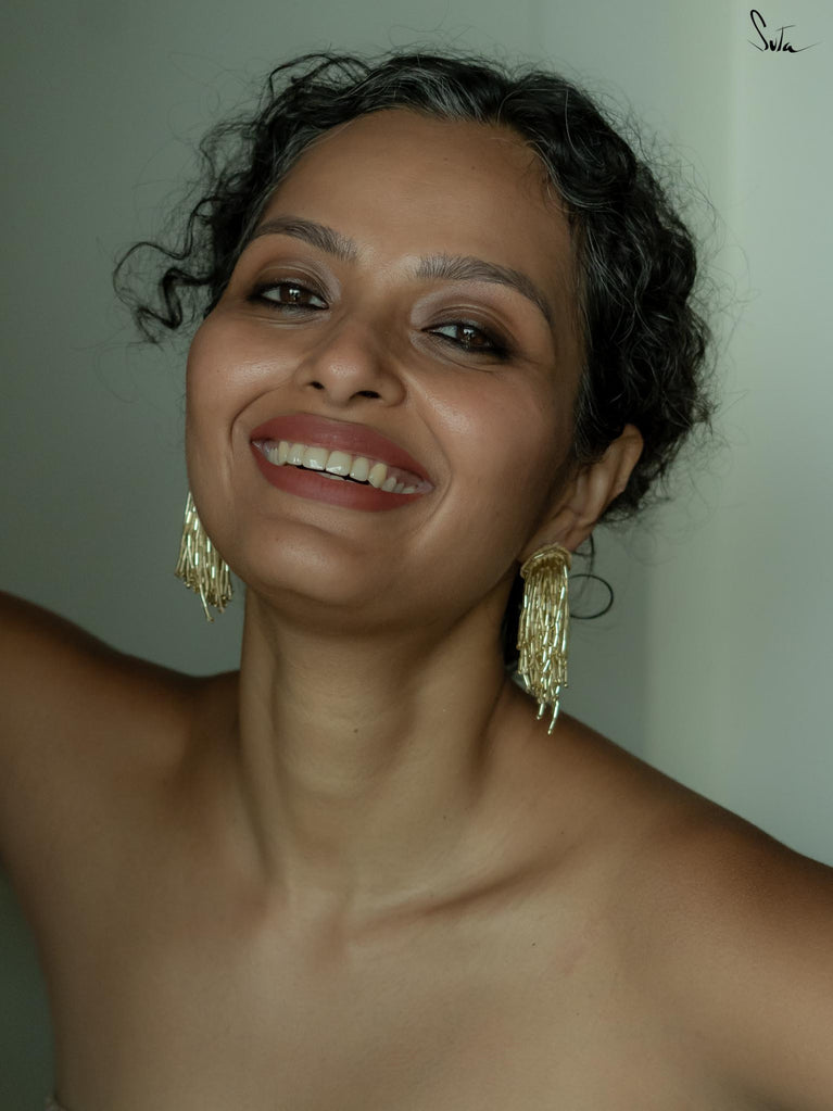 Give your fashion lookbook a golden compliment with the Gold Sparklers earrings. Handcrafted in a striking golden hue and featuring hand-embroidered zardozi thread work, these earrings bring in festive vibes even in the most formal outings.