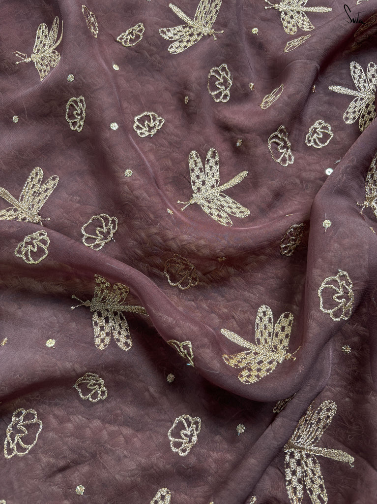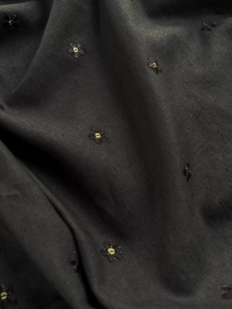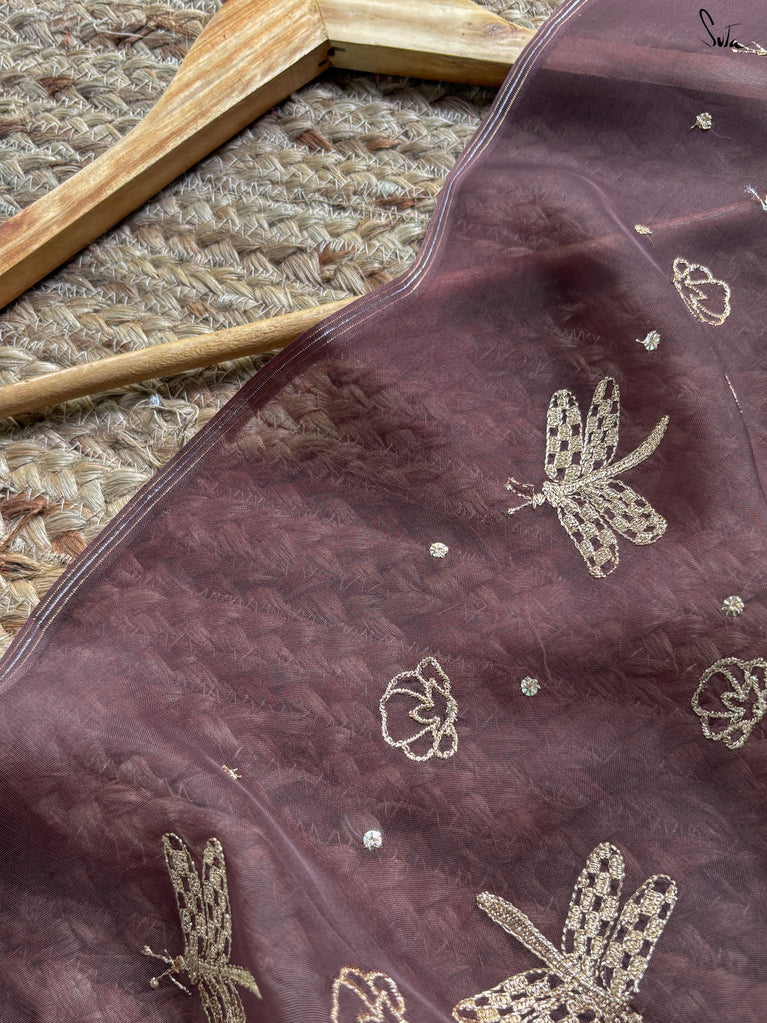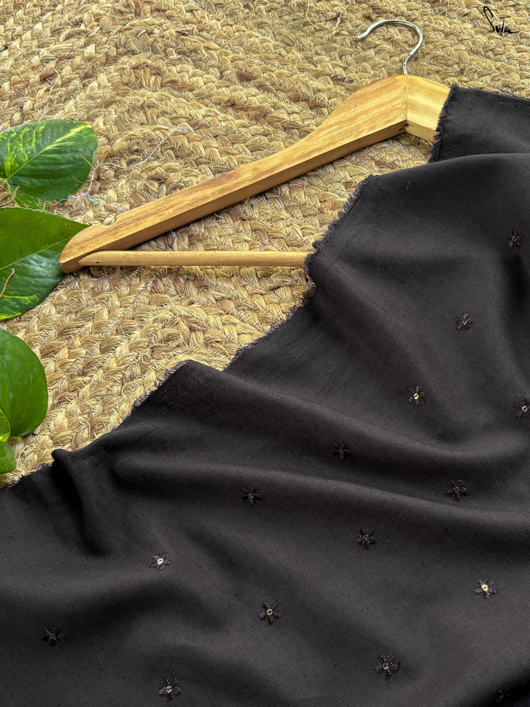 A little shimmer, a little sass, Uski Chaandi is all heart. This purple linen blouse is a playful take on timeless elegance, featuring delicate machine embroidery that glows like starlight. The V neckline and sleeveless cut lend it a modern, flattering silhouette, perfect for drapes that call for a hint of bold charm. It’s that one blouse you’ll reach for again and again when grace needs just a touch of mischief.
