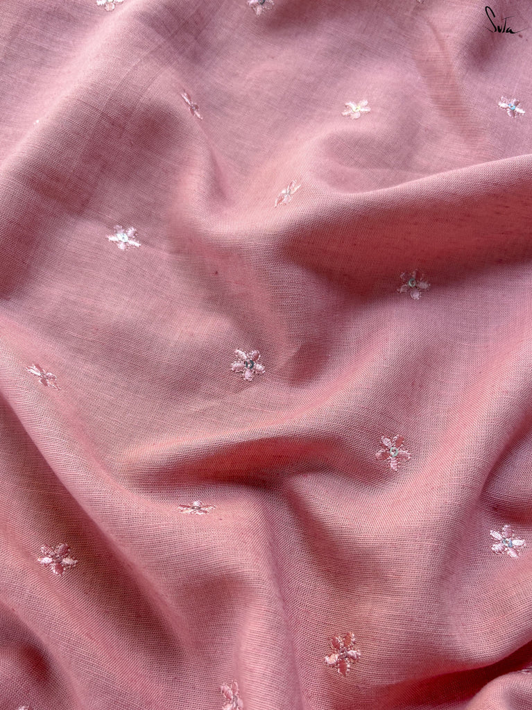 Soft as a secret and radiant as dawn - Asli Chaandi is pure poetry in pink. This sleeveless linen blouse gleams with intricate embroidery that catches the light beautifully, lending it a festive glow. The V neckline adds modern finesse, while the delicate hue keeps things romantic and versatile. Perfect for everything from haldi mornings to evening receptions, this blouse is the real deal - graceful, effortless, and unmistakably you.