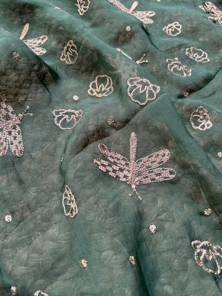 When the moment calls for a little sparkle, Full Chaandi answers. This baby pink blouse shimmers with delicate sequin embroidery that catches every flicker of light. The square neckline and dainty spaghetti straps lend it a modern, romantic charm that’s perfect for weddings, cocktails, or festive evenings under fairy lights. Light, luminous, and full of joy, it’s your cue to shine, head to toe.