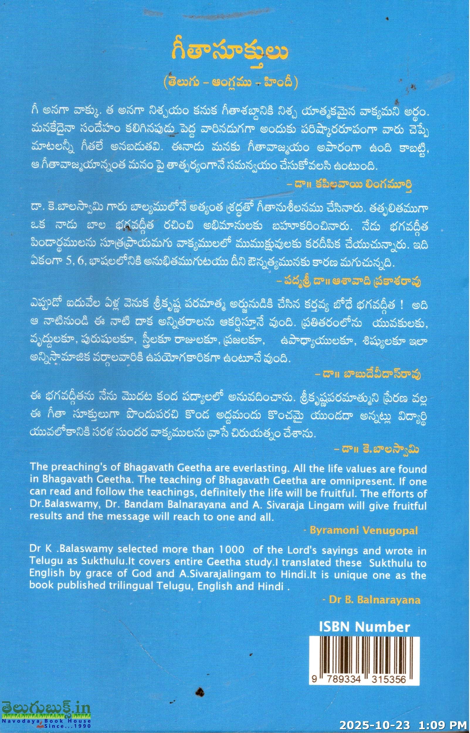 Geethasukthulu(Telugu-Anglamu-Hindi)
