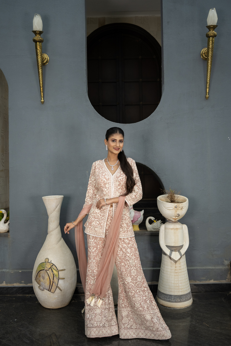 Pink Threadwork on Top & Pant Coord Set