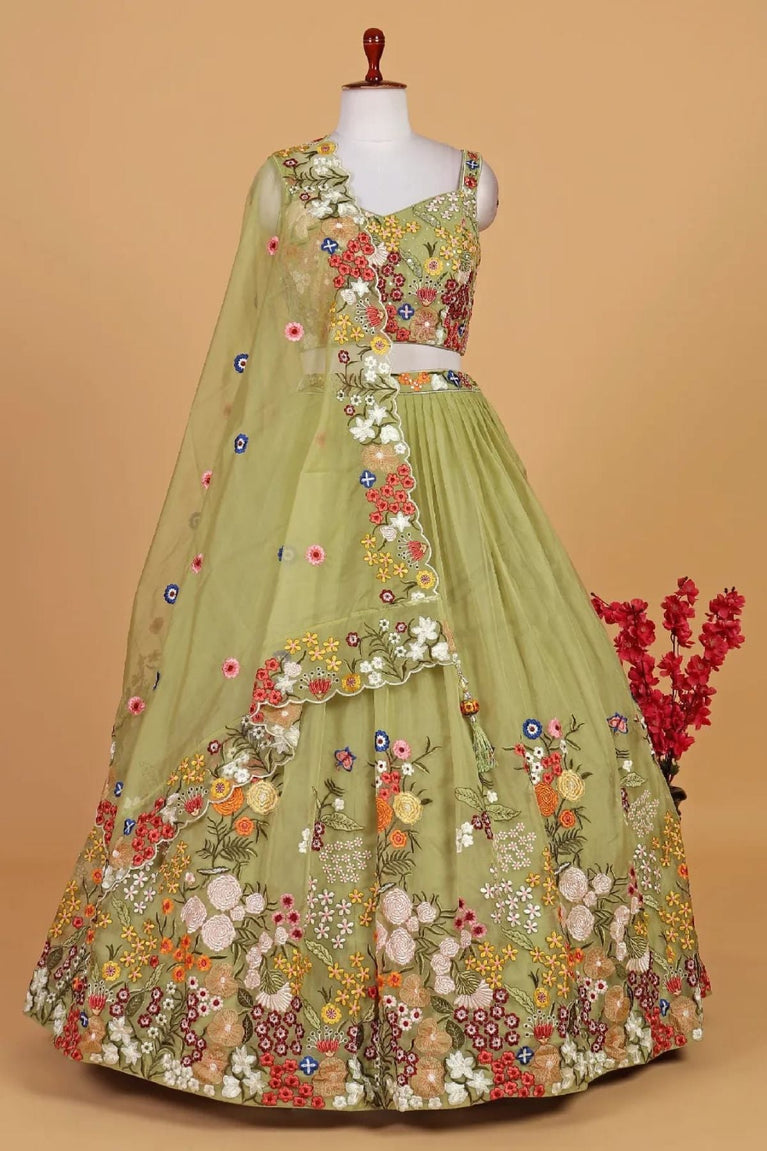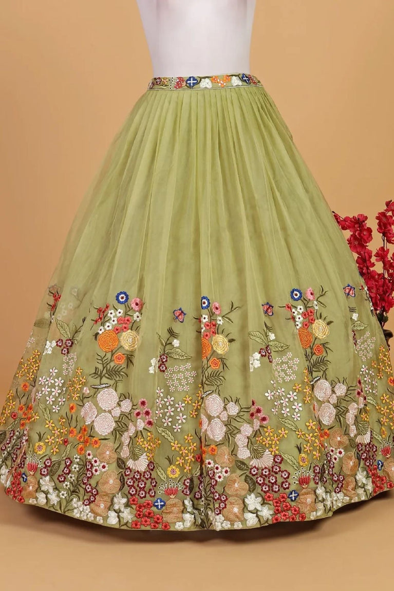 Pista Green Embroidered Lehenga