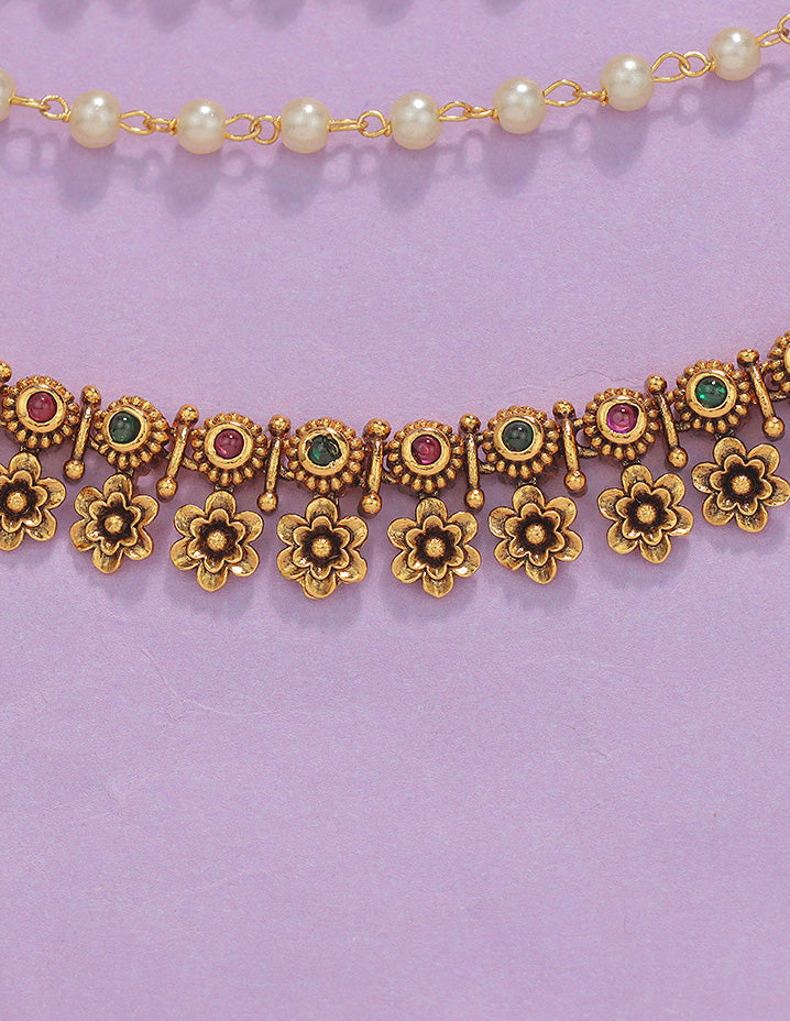 Experience the vibrant Zircoina Stones in this beautiful Chempaswara. Perfect for traditional Indian sarees, it adds elegance to any occasion - from home pujas to grand weddings.