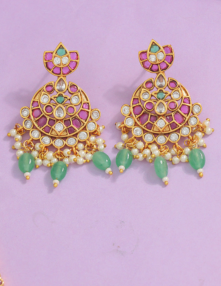 Grace your traditional look with this Matt Kempu Long Haram, featuring radiant ruby & emerald stones. Complete with matching earrings, it’s a timeless piece that adds rich desi charm and makes every occasion special.
