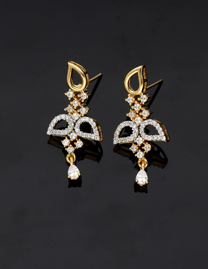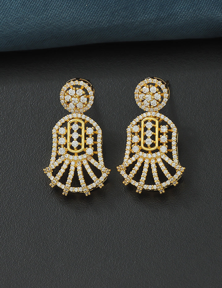 Elevate your style with this Designer Zirconia Elegance Necklace Set, featuring radiant white stones and a refined gold polish for timeless sophistication. Perfectly crafted to add a luxurious touch to any ensemble.