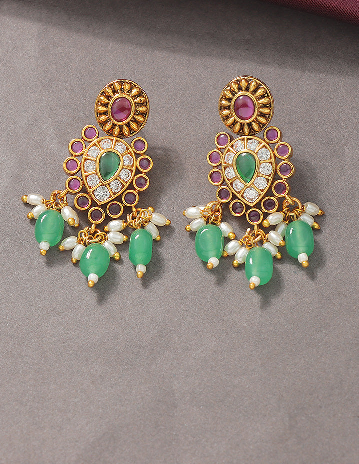 Designer Radiant Emerald Matt Kempu Necklace Set