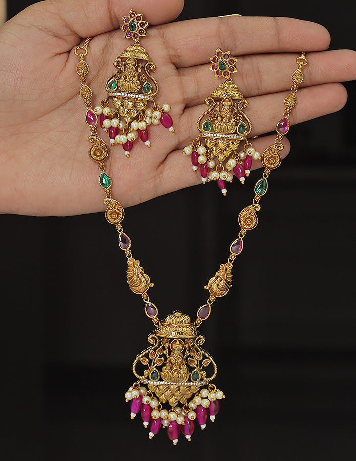 Designer Lakshmi Devi Kempu Necklace Set